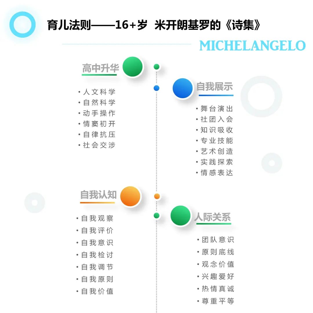 16岁以后的青春实现,高考后的大学生活及未来理想,对未知的向往与憧憬,自己开始给自己定制计划,思维能力会有质的变化,自主能力开始升华。