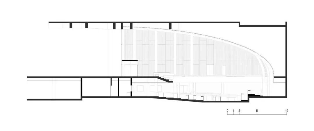 实际上,由结构的动态伸展所创造的天花板,产生了一个皇冠。从深处退下façade,它过滤了强烈的阳光。