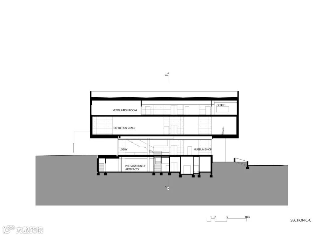 博物馆的工作空间、摄影和展览设计位于扩建部分的三层。装载、储存和展览建设设施位于地下室。在城市景观中,扩建部分是一个历史分层街区中的独立建筑。