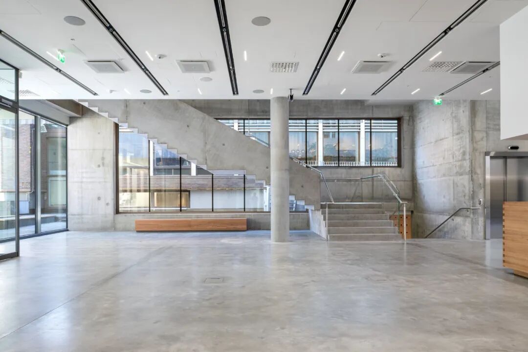 In connection with the lobby, there are customer service facilities, a museum shop, educational spaces, and a museum café on the site of the former fire station equipment hall. The original museum exhibition spaces are now accessed through the new exhibition hall. The temporary exhibition space, located in the extension immediately above the entrance, can be separated from the other museum spaces as needed. This windowless “black box” exhibition space is uninterrupted by structure and is equipped with the latest exhibition technology.