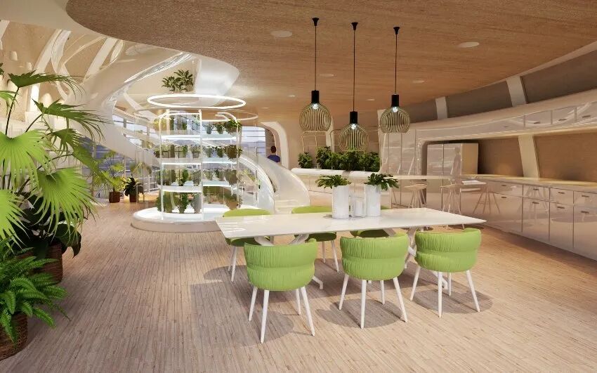 W-LAB的生物舱包含灵活的空间,根据用户的需求,允许他们在家工作,锻炼和种植食物。同时,用户能够与技术发展保持联系,就像在这个方案中,所有的互联网宽带连接都可以由卫星提供,货物能够由无人机送到任何地方。