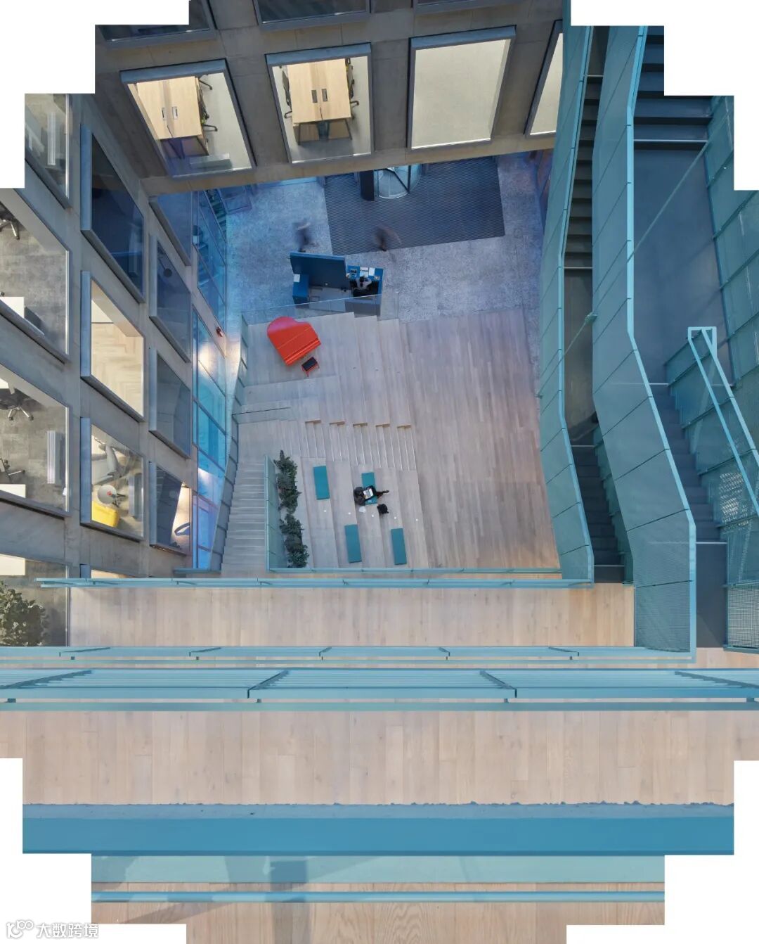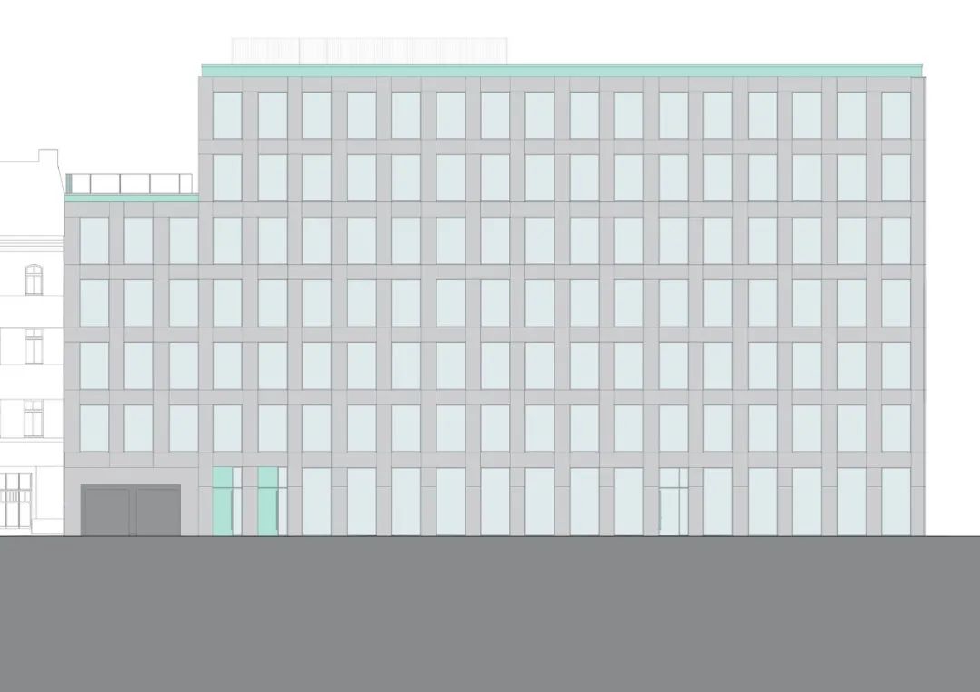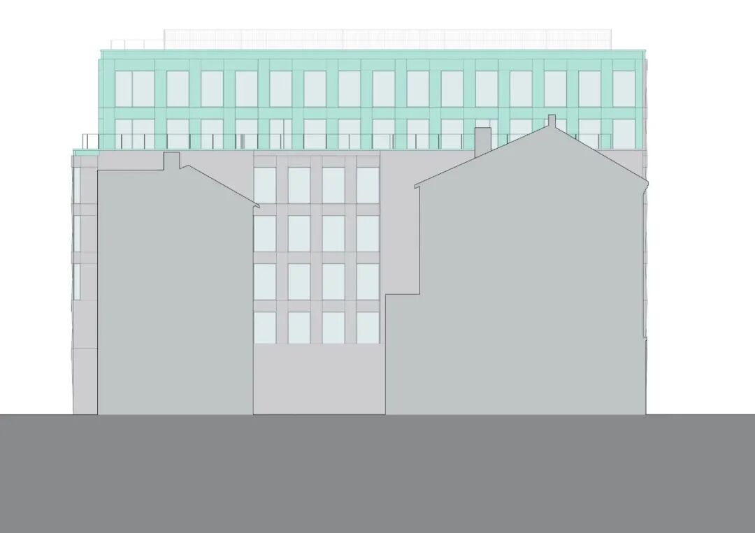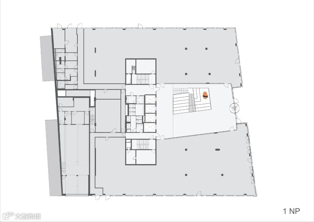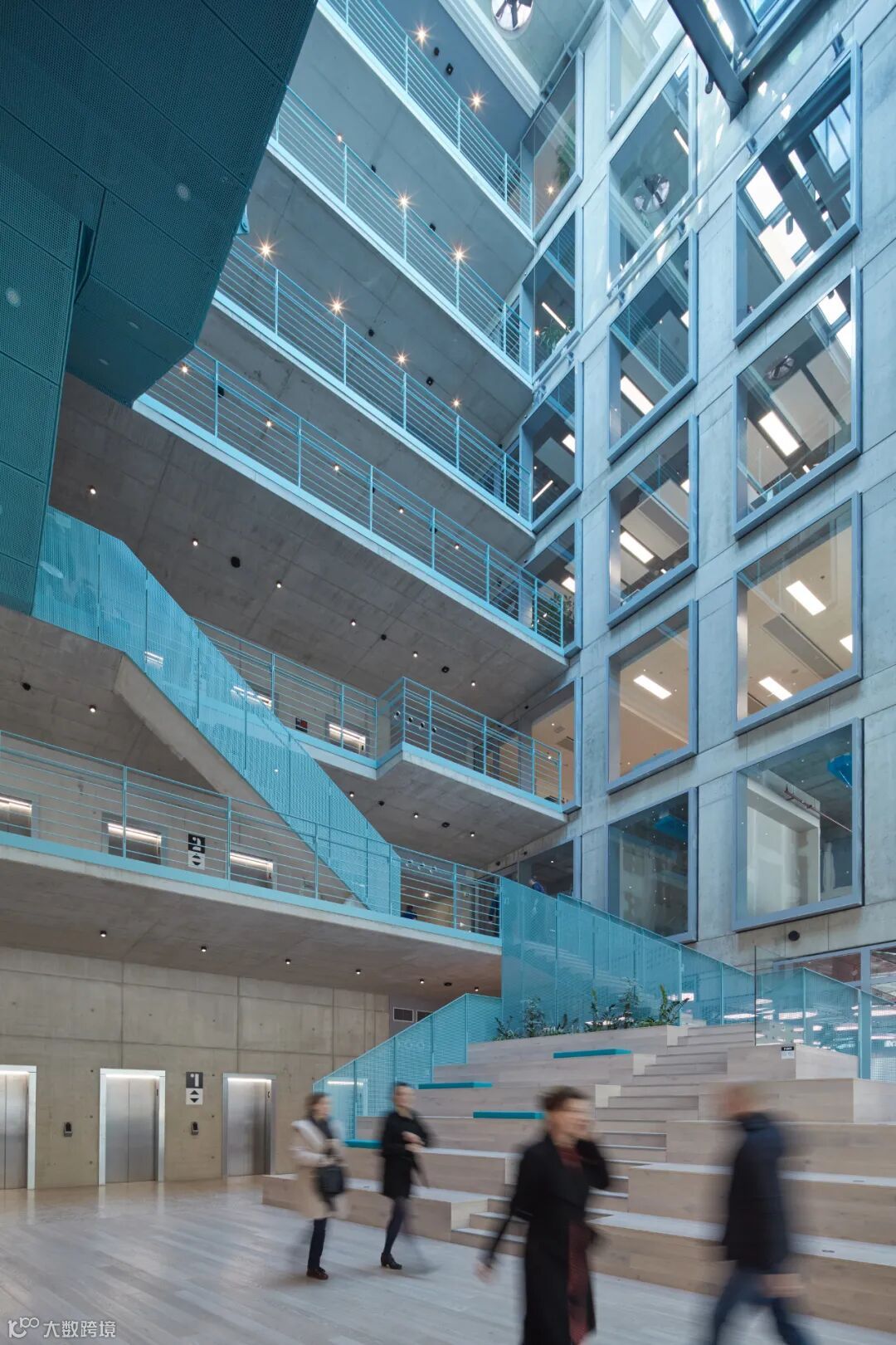 新大楼有两个地下层和七个地上层。梯形平面在建筑物东侧的上两层中退去。新公共空间东侧的主要入口是高架大厅-中庭。
