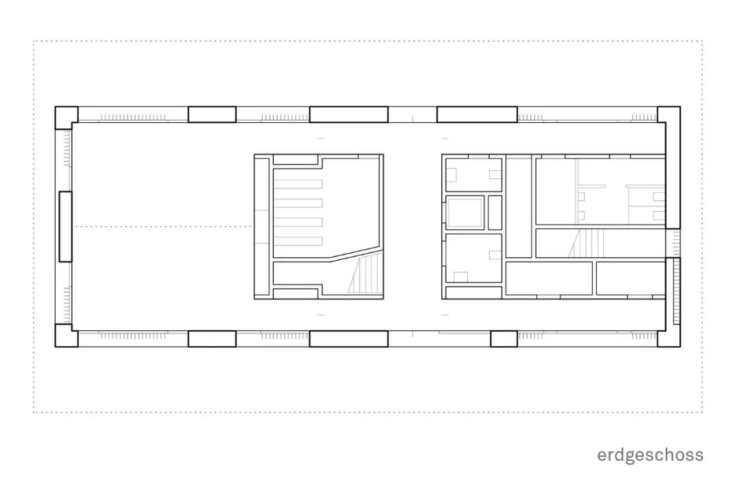 To this end, the barn was revamped with simple, precisely conceived interventions. Its stone-like new base, homogeneously constructed of insulating concrete with deep, generously proportioned reveals, preserves the solid impression of the original. The new openings not only admit significantly more daylight inside, but also enable the entire interior to be experienced in an entirely fresh way – inside and outside open up to each other on the ground floor through the large glazed openings.