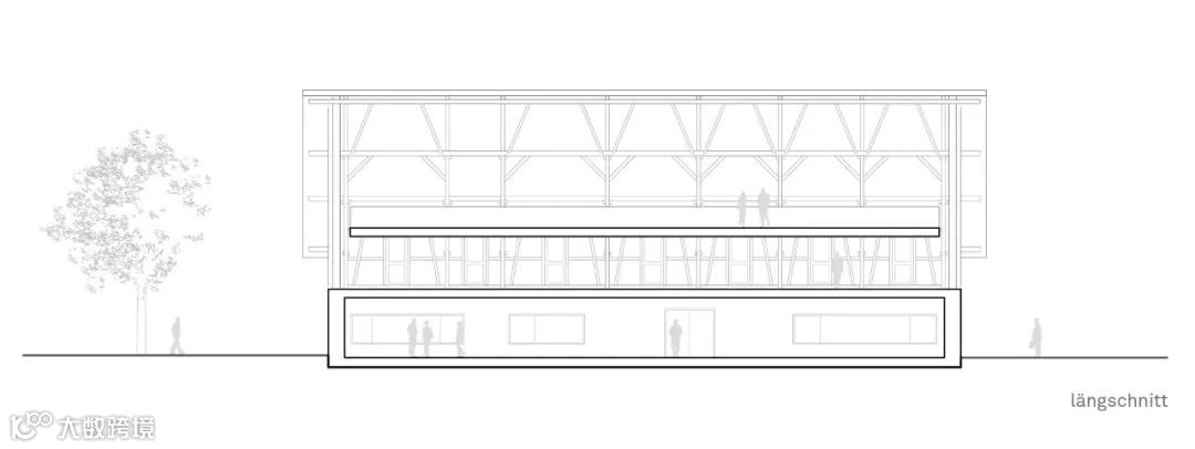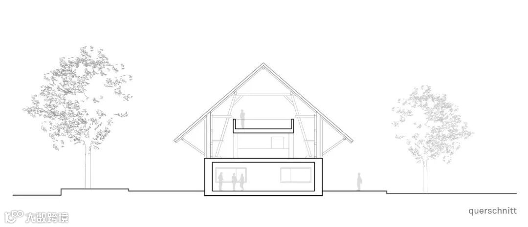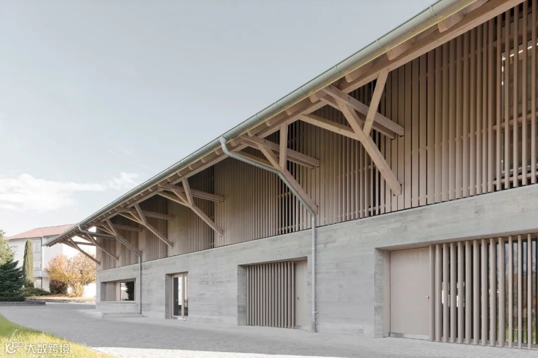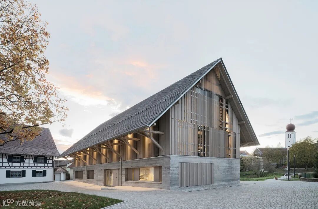 一个诱人的前庭和一个宽阔的户外平台加强了谷仓的新公共特征,并鼓励人们停留。昔日相当内敛的仓储建筑已经变成了一个开放的房子,它保留了其熟悉的形象,坚实的基础和大型开放的木质屋顶结构,同时通过使用的材料和底层的大型开口,明确地表达了一种现代语言。