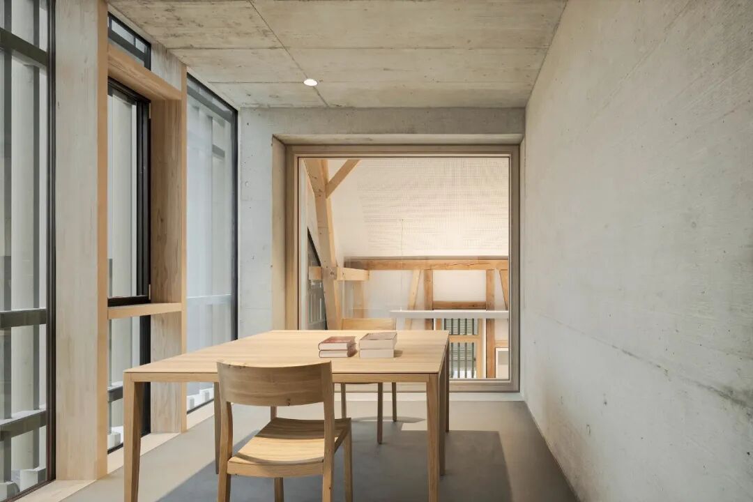 核心区从混凝土基座中出现,连接着上面的两层楼,其开放的廊道创造了明显不同的空间体验。