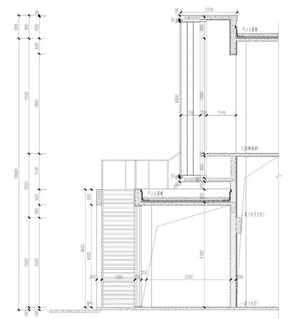 设计之初,示范区被确定在场地西北角,同时也是沿街商铺的起始点,这无疑会带来两种功能上的实际问题。场地狭长,如何处理前场区域?场地之间存在高差,如何处理现有示范区层高和改造后商业的层高?设计初期,尽力保证建筑的体量不过于庞大,留出前场区域,供于室外景观,同时利用场地高差,在前期示范区使用阶段即采用中间夹层做法以扩大展示区的使用面积,因此在“矮宽”形的体块就“被迫”出现。