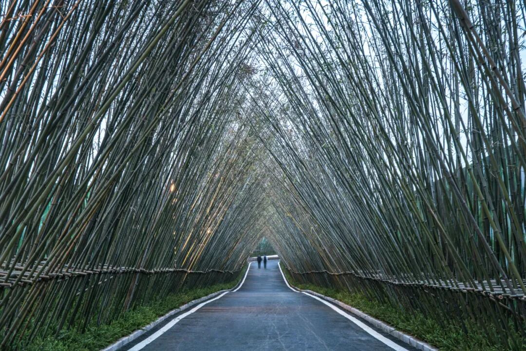 ▼竹林隧道,竹叶海在风中泛起层层竹浪,光影在缝隙之间穿梭而来,时光之车快速通过,流星融进铺装相映成趣,一束束奔向未来之门。