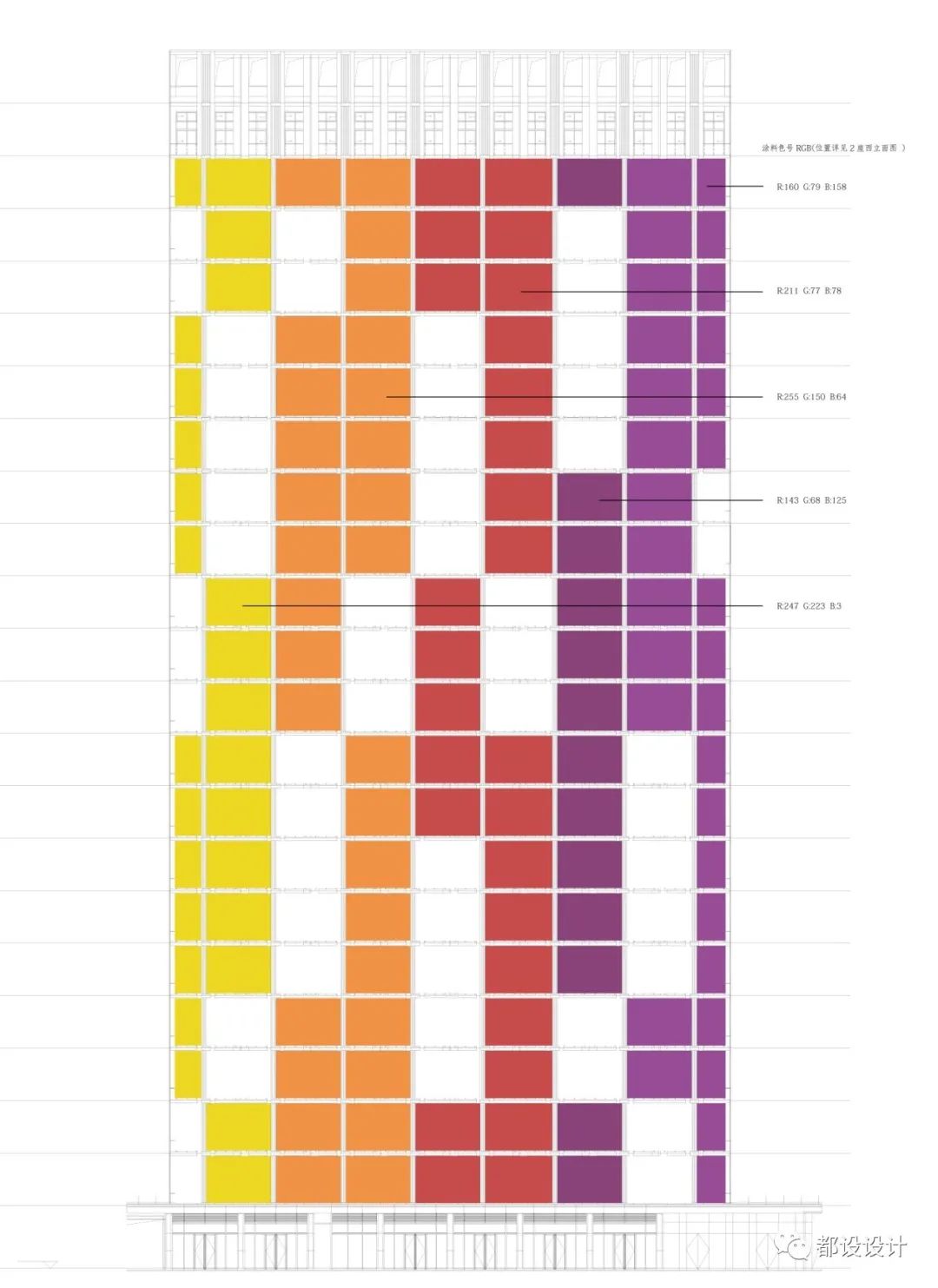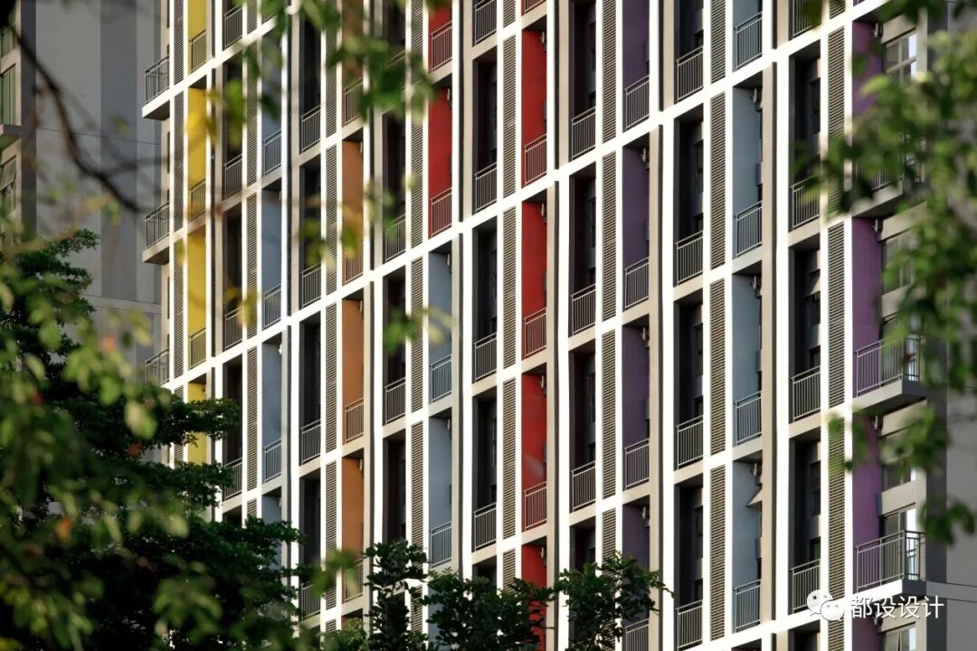 首先注重色彩设计技巧,同时从观念层次对建筑色彩设计的风格倾向和形态特征进行了探讨。彩色涂料结合穿孔金属板,造价可控。单元化立面保证了均好性的同时可通过仔细雕琢基础单元,批量生产控制成本。