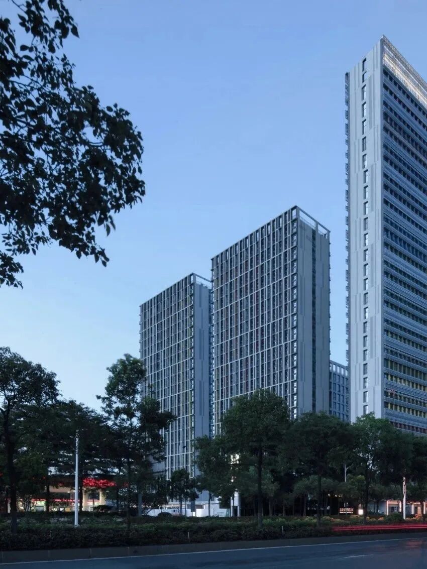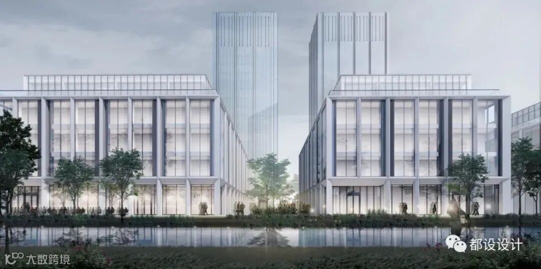 南京未来水世界的办公楼无论高层还是多层,都严格遵循这一原则,塔楼四个面的单元尺寸一致,和多层60%的单元尺寸也一致,这样能够将幕墙的单元板块限定在1-2种内。