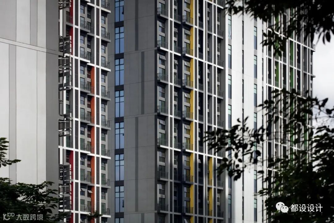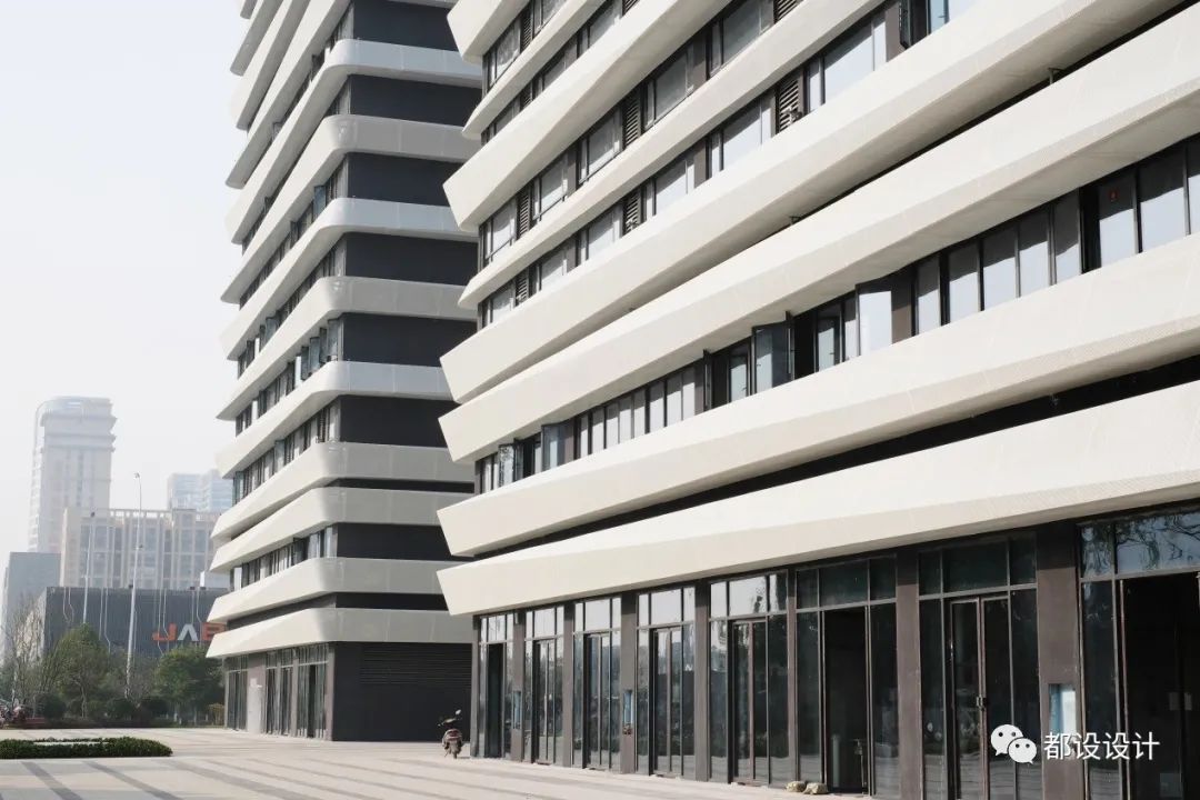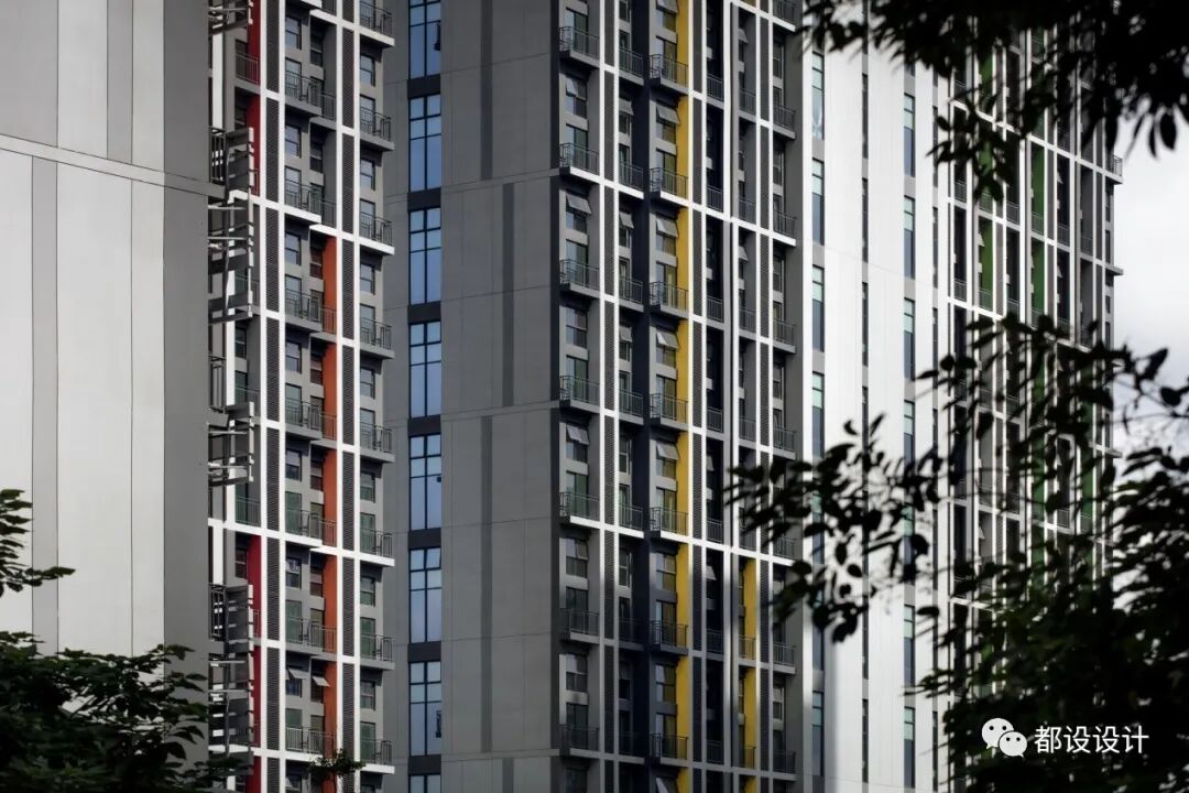 公寓的立面最大的挑战就是空调百页,市场上基本是单体空调,所以每一个开间都会有一个空调,百页做出来就会特别难看。在都设的三个公寓项目当中,尝试打破常规,将空调机的遮挡和造型相结合,取得了不错的效果。