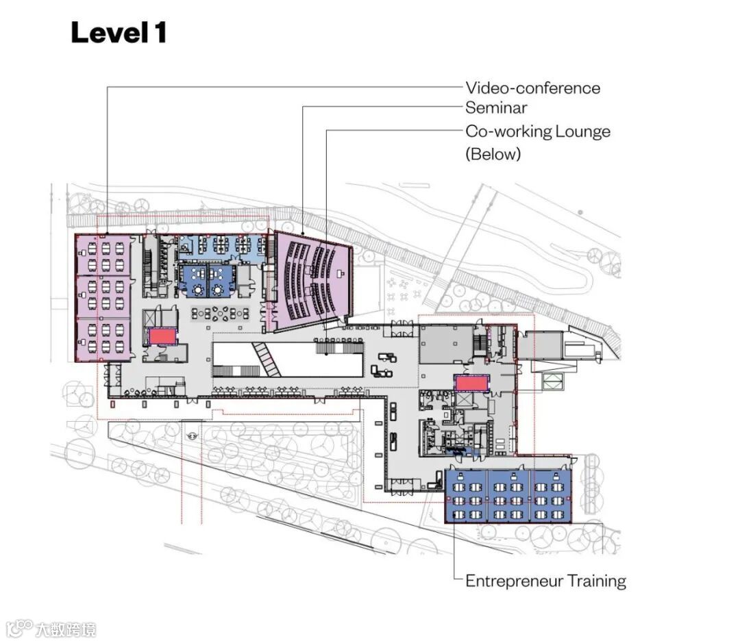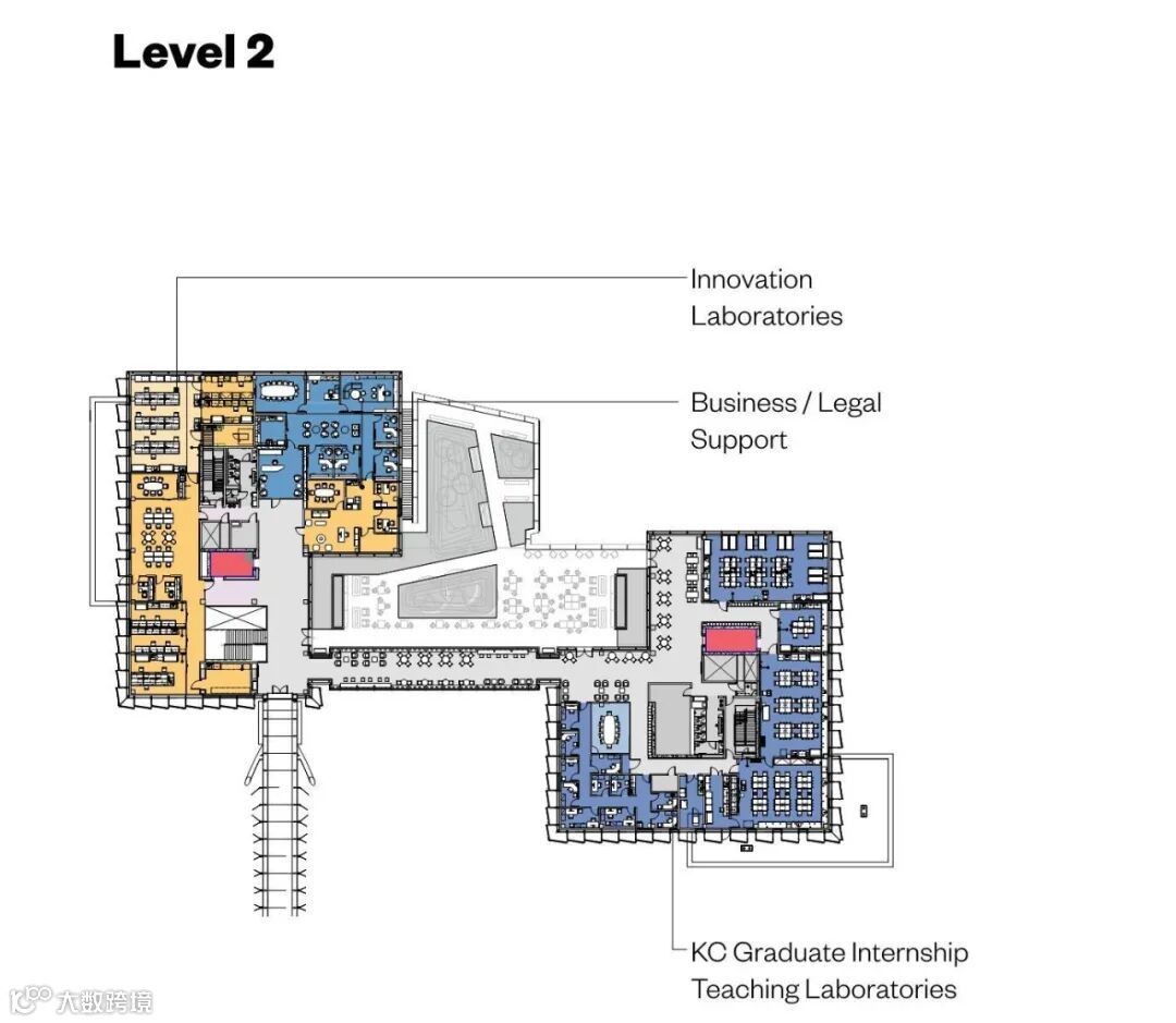 根据研究人员的喜好,各种封闭和开放的计算空间补充了传统的工作台和工作室空间。创新实验室被设计成可以出租该地区的初创企业的空间,将奈特校区打造成一个旨在吸引世界各地的合作伙伴来解决一些社会最紧迫的问题的社区强化机构。