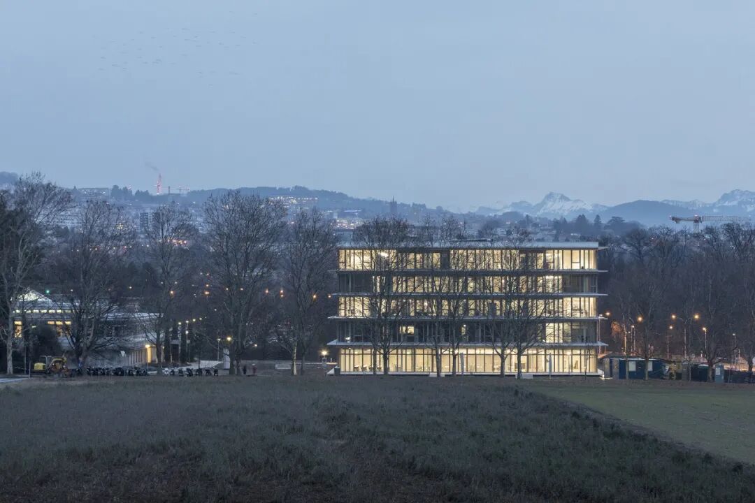 Located on the University of Lausanne campus, the compact form unites four public and private institutions to create a new center of competence for researching and teaching sports science. Its quiet exterior belies a bustling beehive of exchange inside. This new building provides diverse spaces for collective use, promoting formal and informal collaborations between the organizations while being open and inviting to the university.