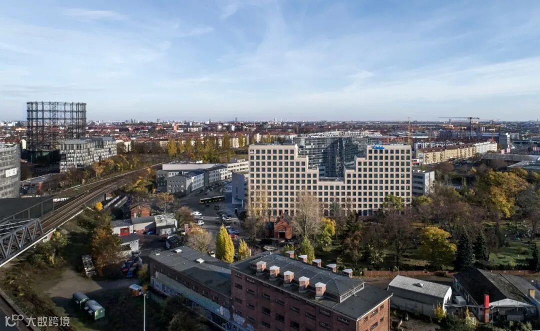 从远处看--从柏林环线或城市高速公路上看--新建筑与建筑师于尔根-萨瓦德(Jürgen Sawade)设计的一直孤零零的相邻建筑在快速发展的柏林新城区 "Schöneberger Linse "和 "EUREF-Campus "的入口处形成了一个引人注目的整体。
