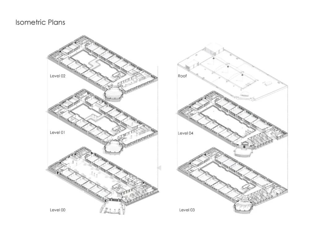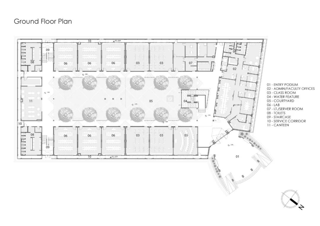 该项目包括报告厅、计算机和科学实验室、设备齐全的双层图书馆和两个报告厅,以及围绕一个庭院组织的行政和教师办公室,形成了一个中央多功能公共空间。