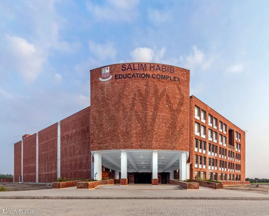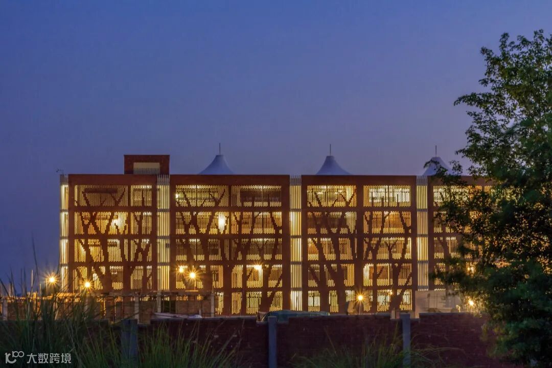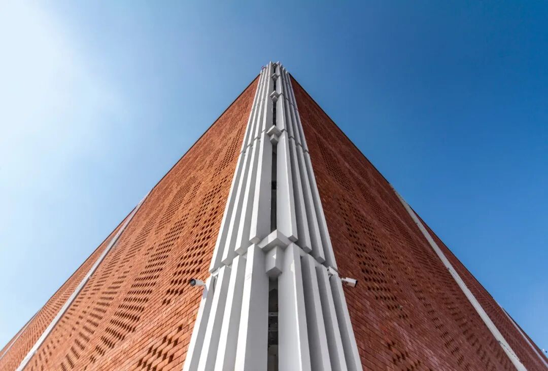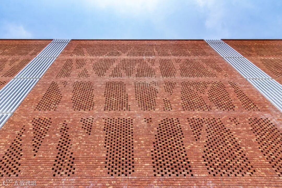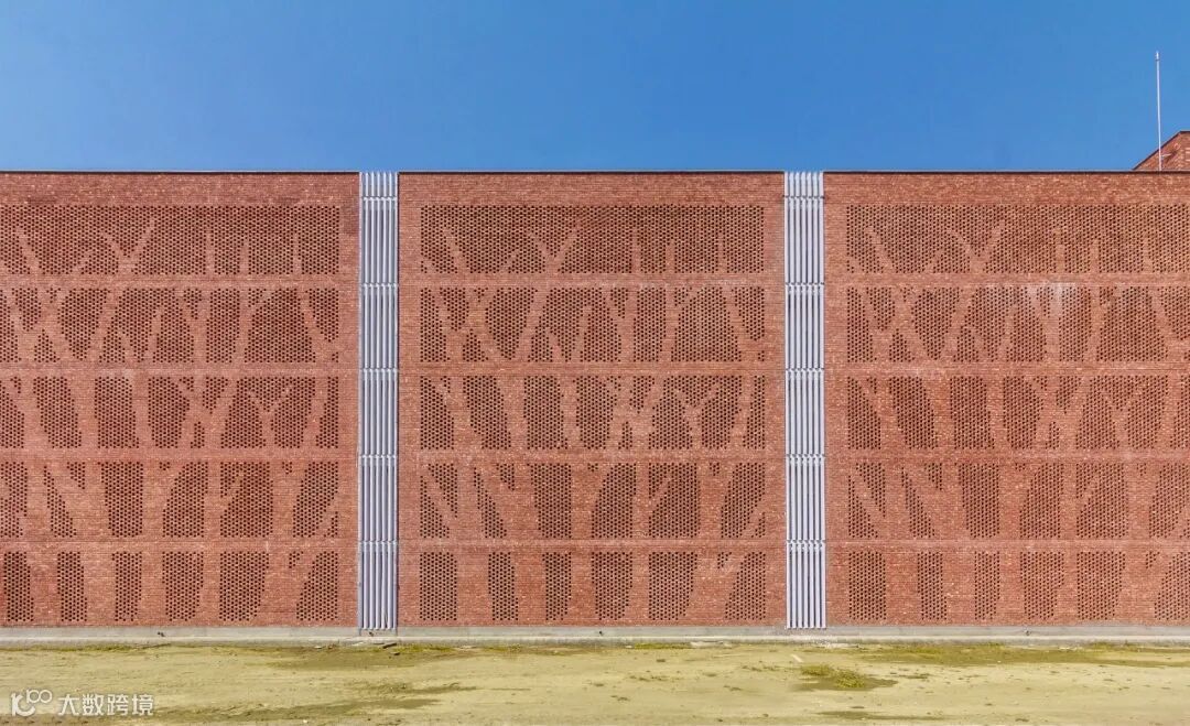 这个穿孔屏,用69万红砖建造,是当地工艺和技术的完美融合,设计响应了当地强烈的气候条件。屏幕的图案与周围的树叶相呼应,其概念是体现一棵成长的知识之树。