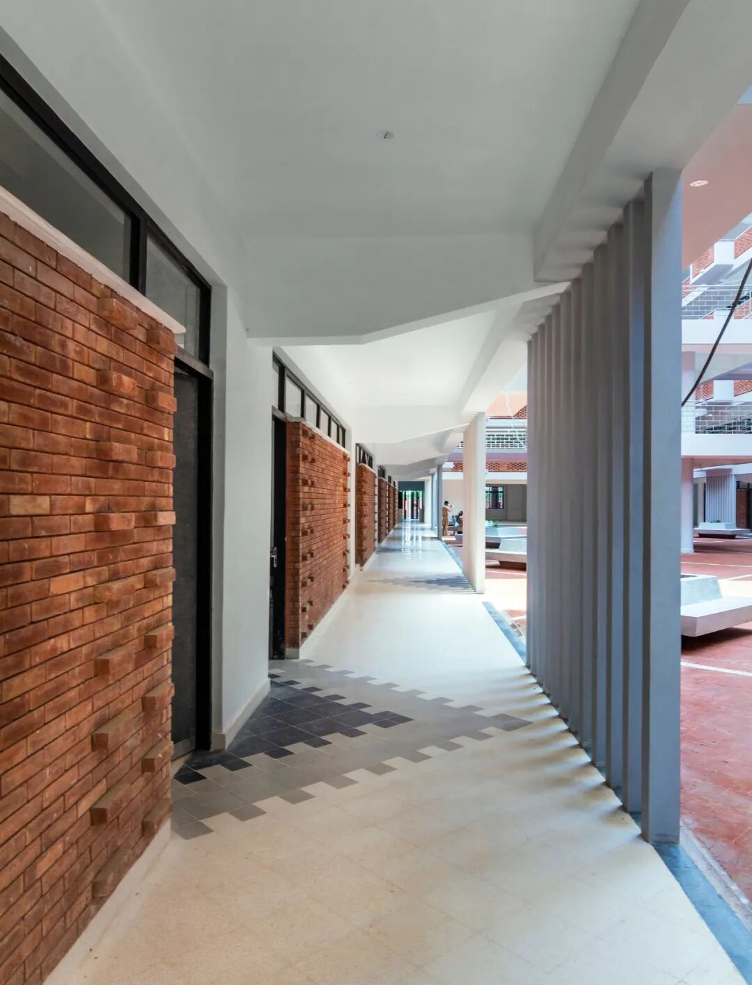 The site, located in a small rural town, posed several challenges ranging from limited access to skilled labor to lack of advanced building materials. Pre-cast and in-situ terrazzo floors are used extensively alongside the red bricks façade. To consciously reduce the overall carbon footprint, the building mostly employs locally manufactured materials, all of which allows us to celebrate the indigenous architecture and traditional language. The design process is motivated by sensitivity and a climate-conscious approach which has allowed us to create architecture that stands as a modern landmark while being firmly rooted in its context.
