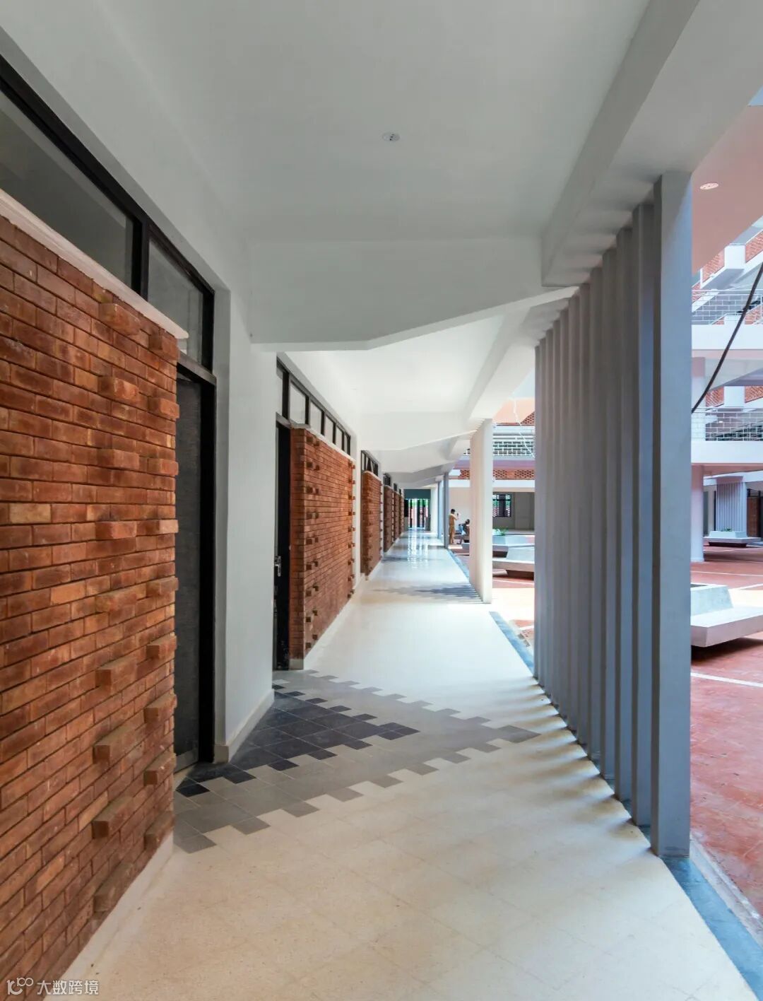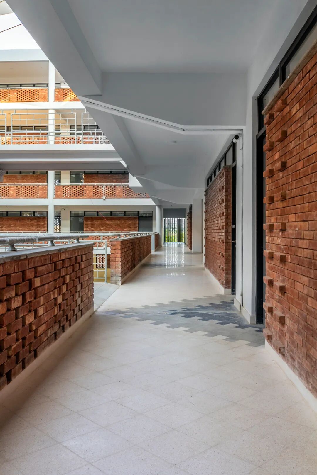 该项目位于一个农村小镇,面临着一些挑战,从技术工人有限到缺乏先进的建筑材料。在红砖外墙的同时,预制和原位水磨石地板被广泛使用。