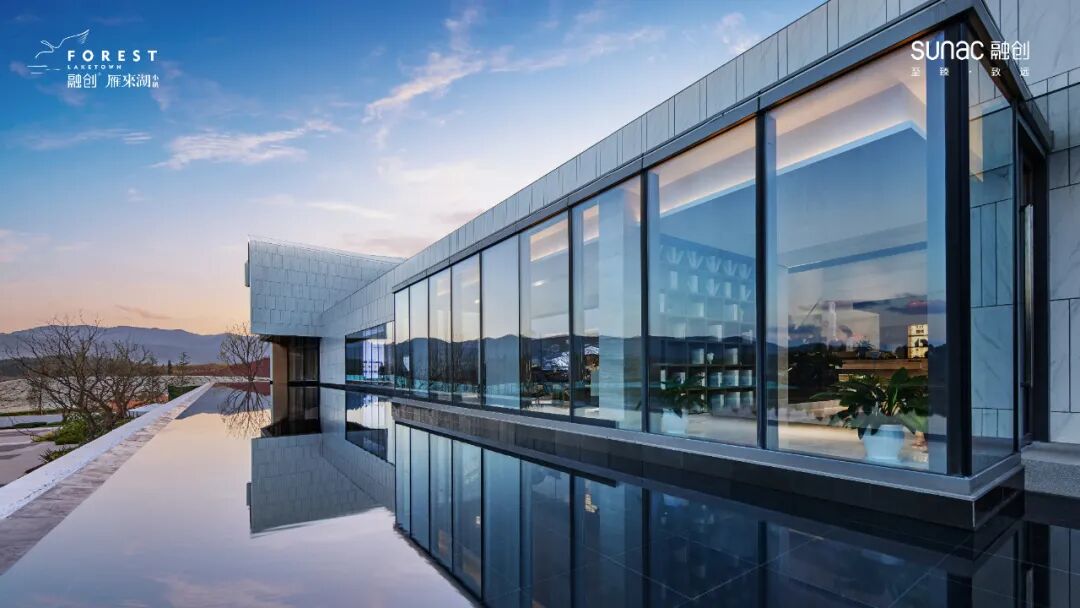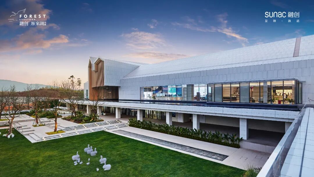 作为整个示范区的标志性建筑,售楼部的占地面积约3000㎡,并以融创中国金奖示范区——杭州运河源生活美学馆为复刻模本,打造独具一格的建筑形象。