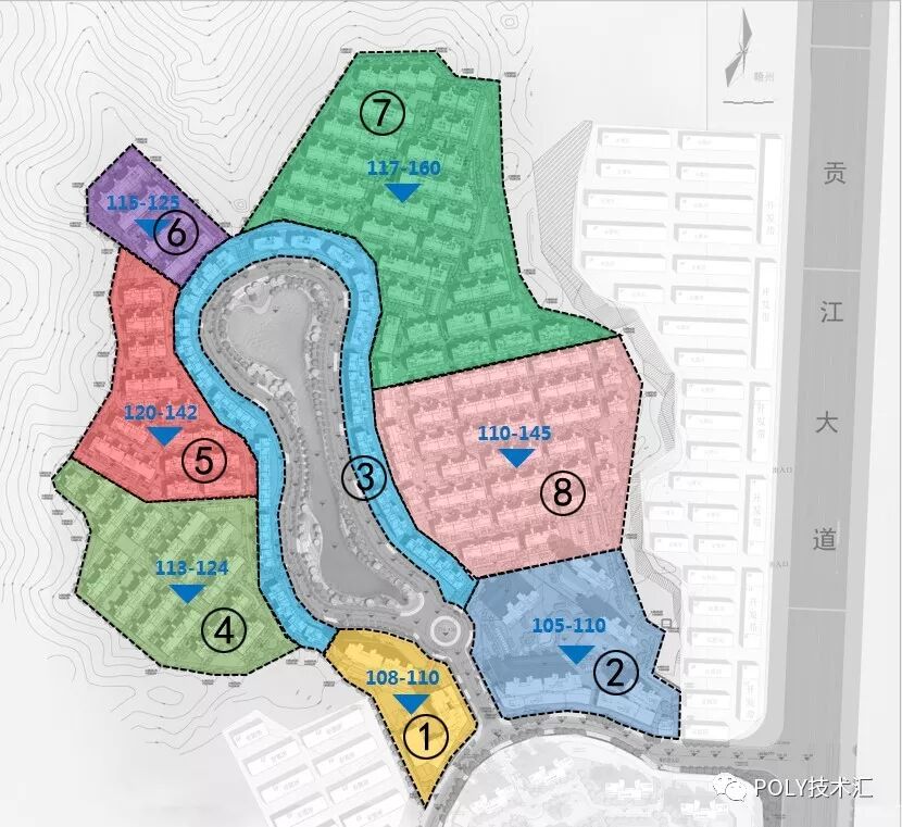 面对如此复杂的地形,如何处理地形关系,针对不同的地形布置不同的产品,在满足户型产品舒适度、提高货值及降低施工成本之间寻找平衡成为本项目成功与否的关键。