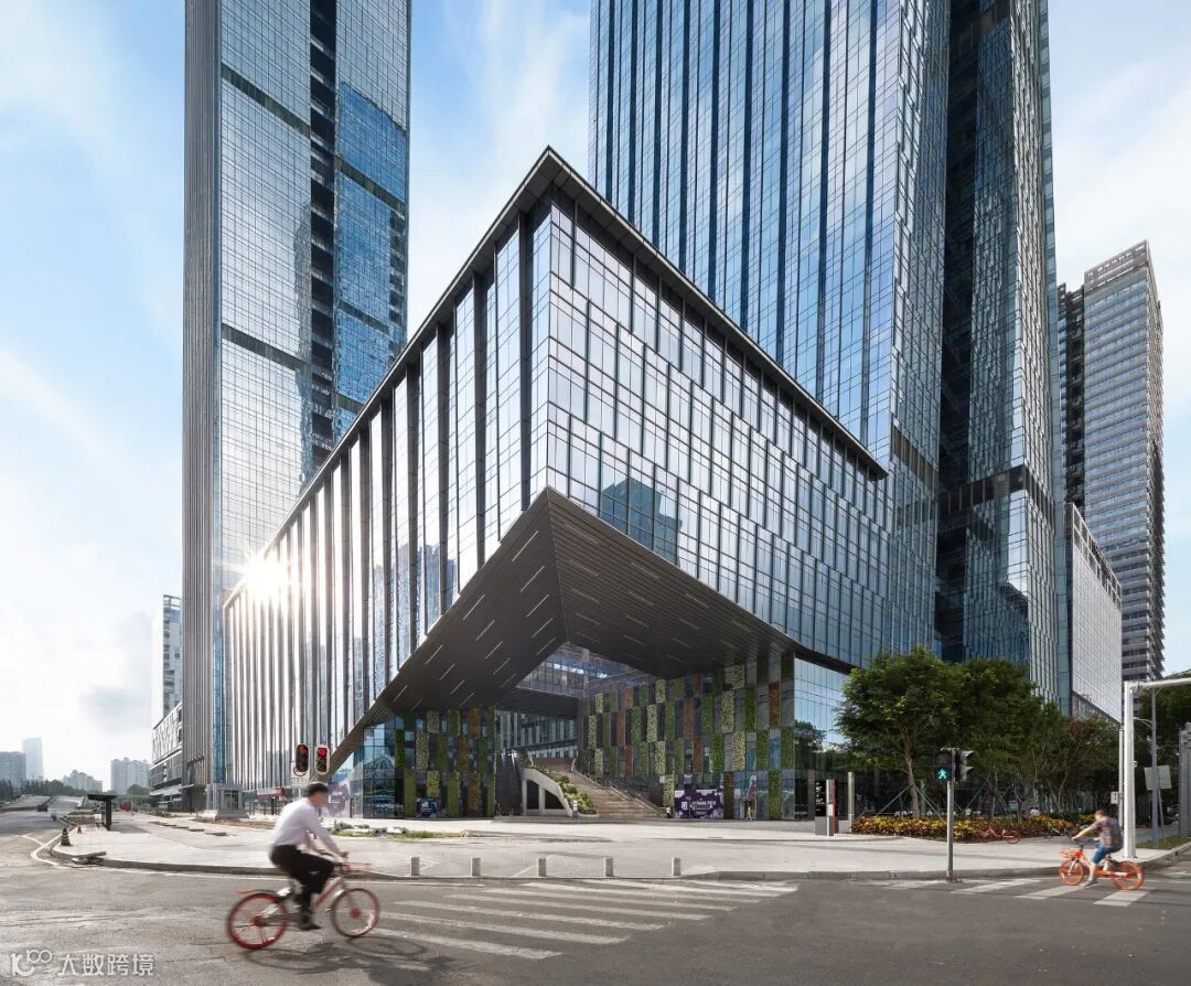 裙楼的宽阔玻璃幕墙提供了深圳和香港湾对面的全景。裙楼的规划包括零售和商业办公空间,以及位于上层的豪华五星级酒店。