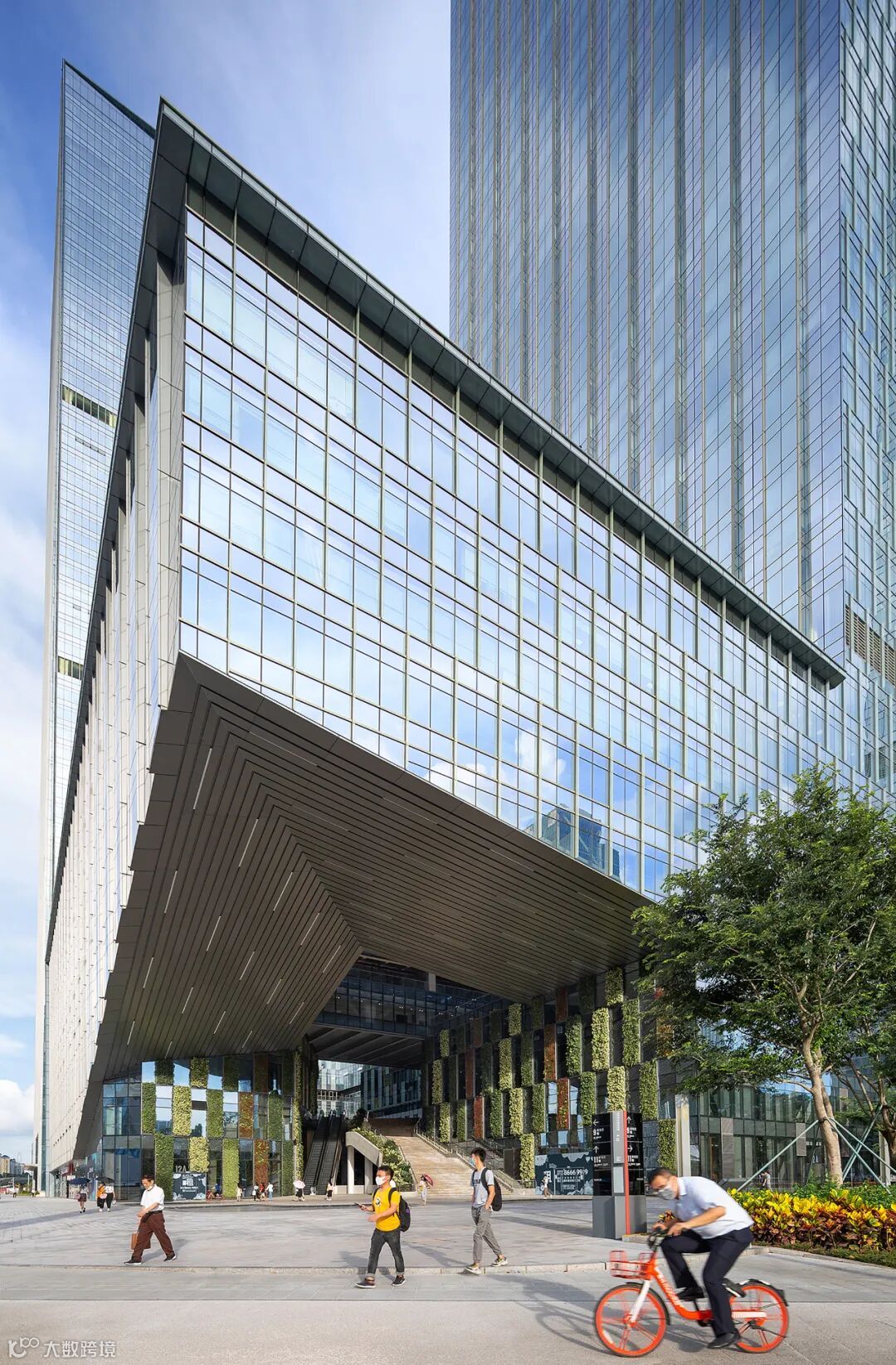 The project achieved a 2- Star Green Building rating under the ASGB Standard, equivalent to LEED Gold. At grade, the towers are connected by a large podium base that is articulated so that the profile of the towers read as a continuous ribbon unifying the horizontal of the base with the vertical of the towers. The expansive glass façade of the podium provides panoramic views of Shenzhen as well as Hong Kong across the bay. The Podium is programmed to include retail and commercial office space, as well as a luxury five-star hotel on the upper levels.