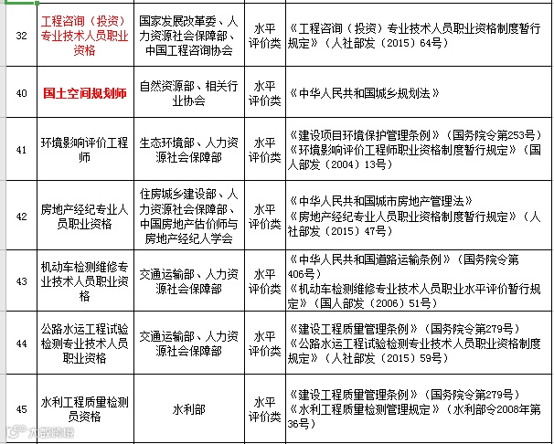 原注册城乡规划师调整为水平评价类,更名为“国土空间规划师”;