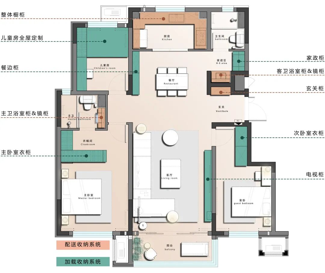 在收纳方面不止于眼前,打造更周全的细节,匹配从入住乃至今后十余年的居住变化,打造兼具弹性与高效、人性化、更加懂你的家。