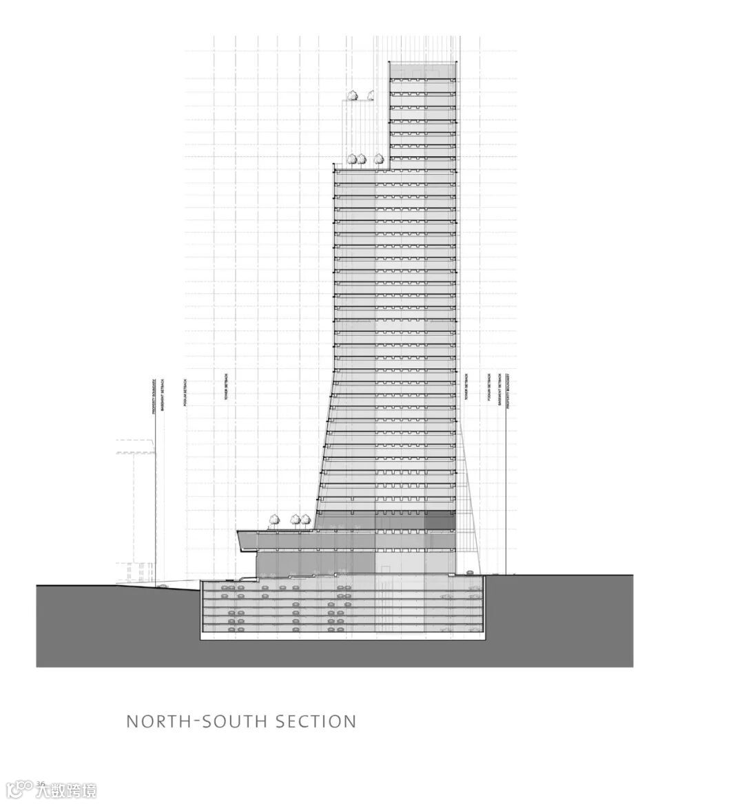 裙楼的屋顶还与内部公共空间相连,形成一个高架公园,扩大了公共、城市领域。"该建筑为该区设想了一个新的城市战略,"KPF设计负责人AIA Jeffrey Kenoff说。