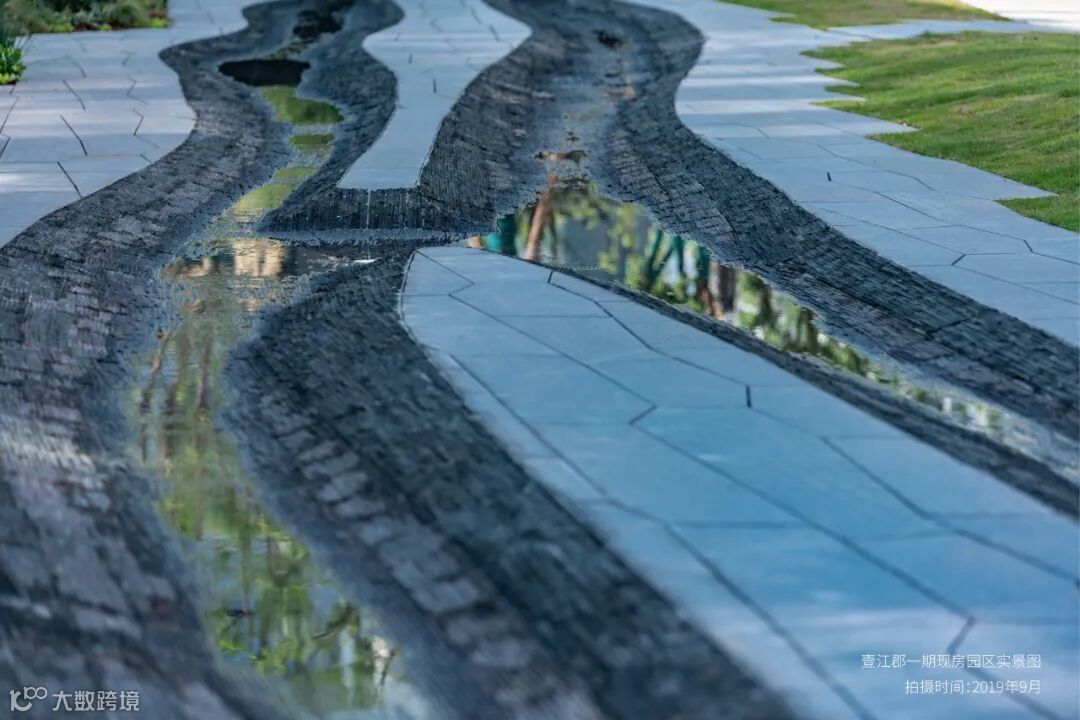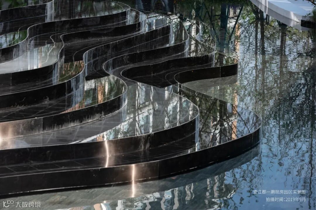 取“江中鹅卵石布局、水系幻化江水流淌”为景观打造主线索,以水景重现大地河流的生命流经。让面积逾9000㎡中庭景观空间,呈现耳目一新的艺术质感。