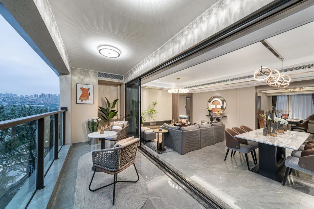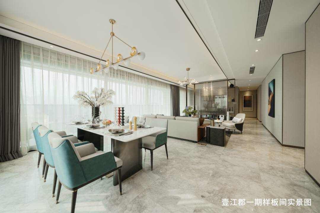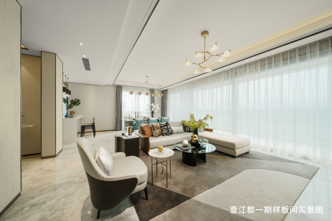 在户型上,最大达约11.1米的景观阳台,通过视野的优化打破了园景、江景与室内空间的界限。