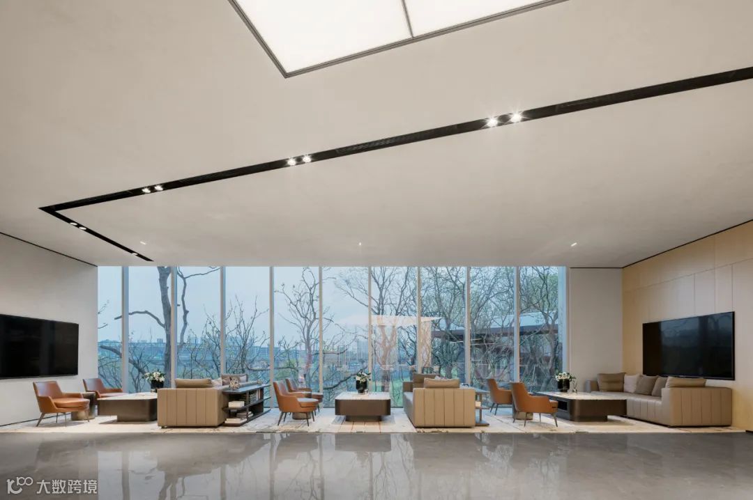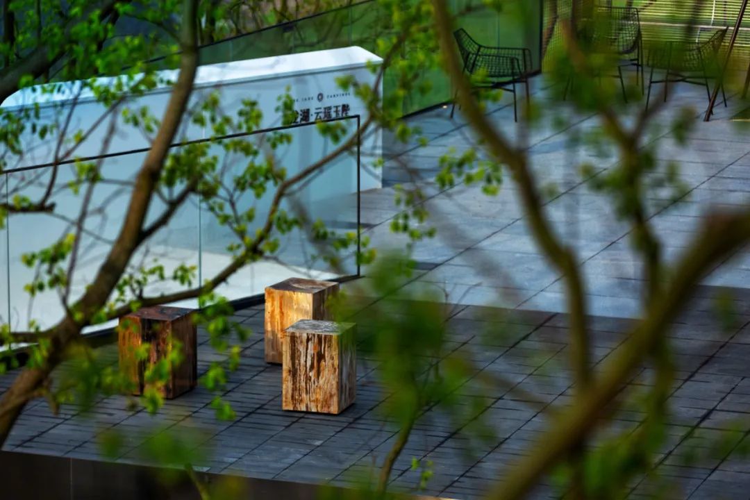 项目内庭院空间,是一片雾都的山林之境,我们引江山云海入画,用简洁明快的空间线条和疏朗的乌桕林营造一个诗意静谧的庭院,展开这场度假之旅动人的前奏。