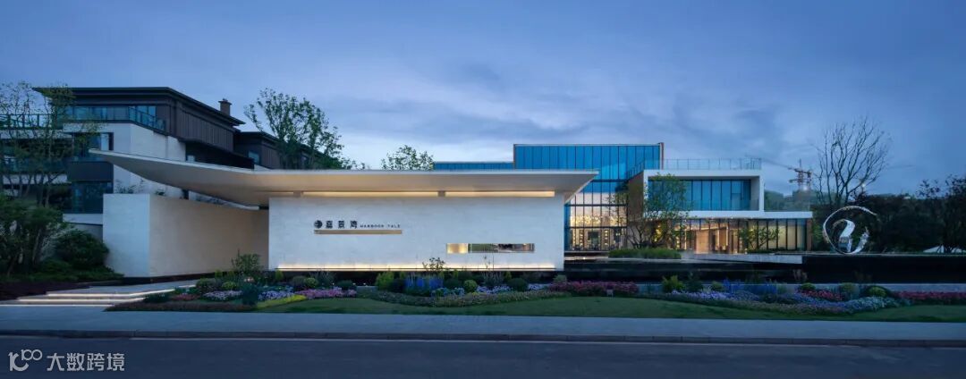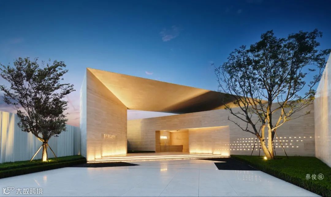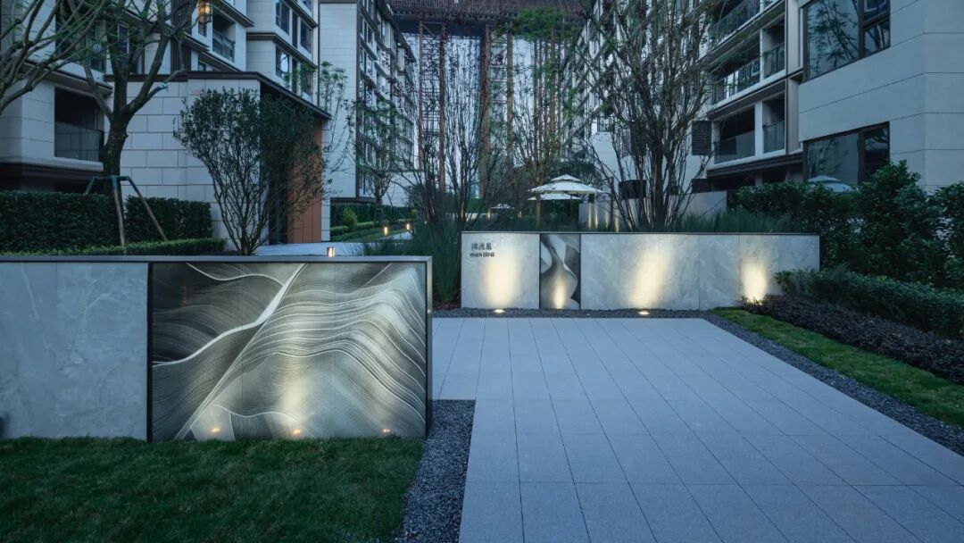 其中别墅立面以石材为主,配合雕花穿孔铝板及大面积横向玻璃的运用,3+1层、L型合院,有天有地有花园,营造出符合当代审美下的建筑语汇;