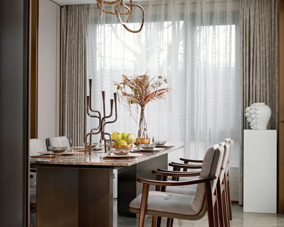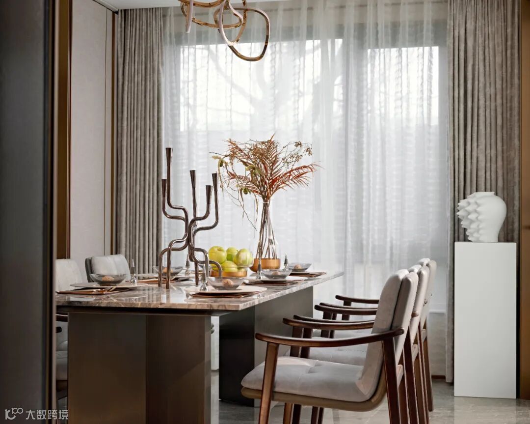 玻璃材质自身的纯净透明,还增强了室内外的互动关系,围合出空灵、通透的意境,透过大落地窗更大程度地获得风景。