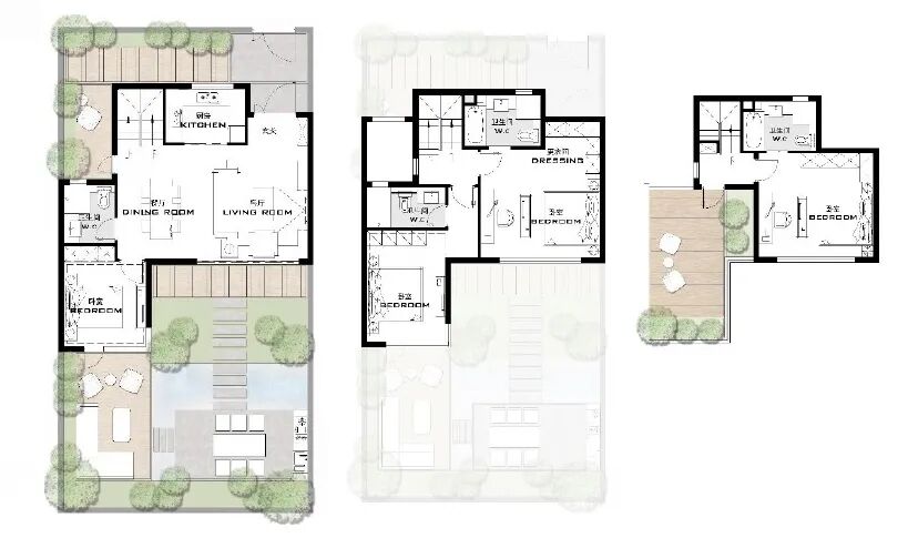 相比别墅而言,合院产品将院子围合起来,使别墅的活动空间由单纯的室内向室外扩展,从别墅变为院墅,更符合中国人的天地人合一的空间理念。