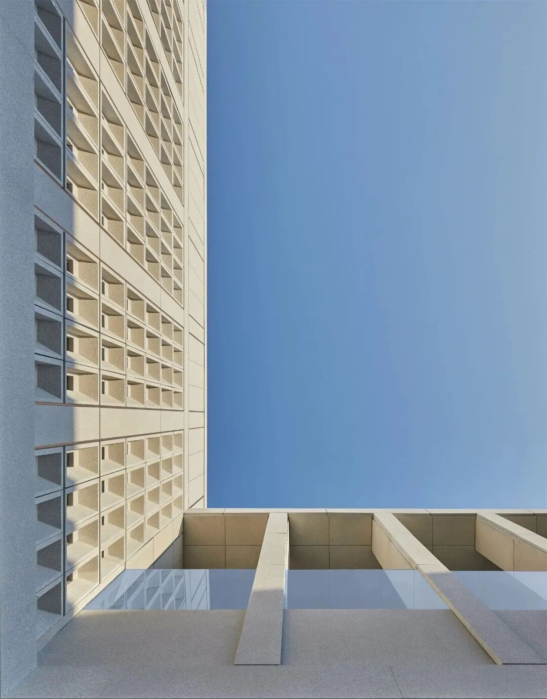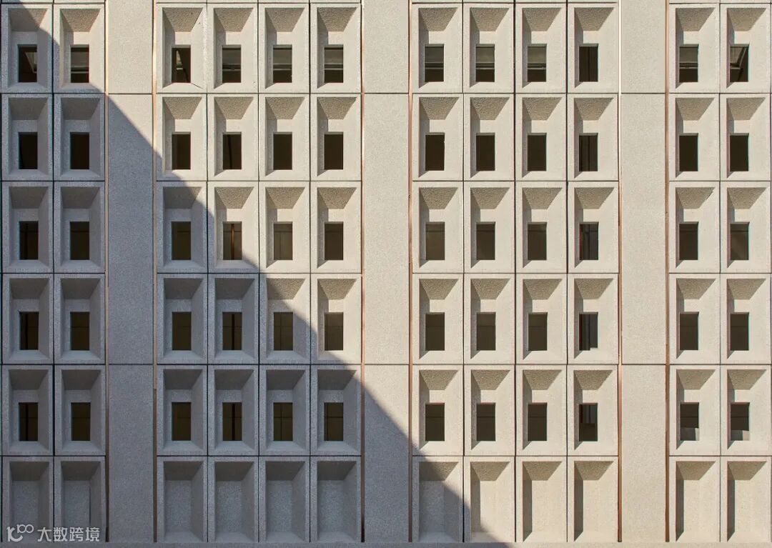 越是具有艺术美感的越是拥有理性逻辑的秩序。设计从平面尺度到立体比例均运用模数化的建筑语言,经过多种比例的反复推敲以及可观可感的多维视角,最终实现立面肌理的有序性与标志感。建筑的光影彷佛被雕刻于立面表皮上,由此虚实变化的韵律感也被印刻于此。