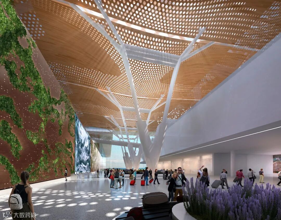 不仅如此,该航站楼将通过多角度贯彻节能环保的原则,例如采用太阳能电池板、自然光照明、自然通风和遮阳等,再结合节能器冷却、高性能机械系统和建筑管理系统,整体能源消耗可以被最小化,从而打造全球首屈一指的净零航站楼。(*Tips: 净零建筑,是指全年总能耗量近似等于在现场或在其他地方所生产的可再生能源量的建筑。)