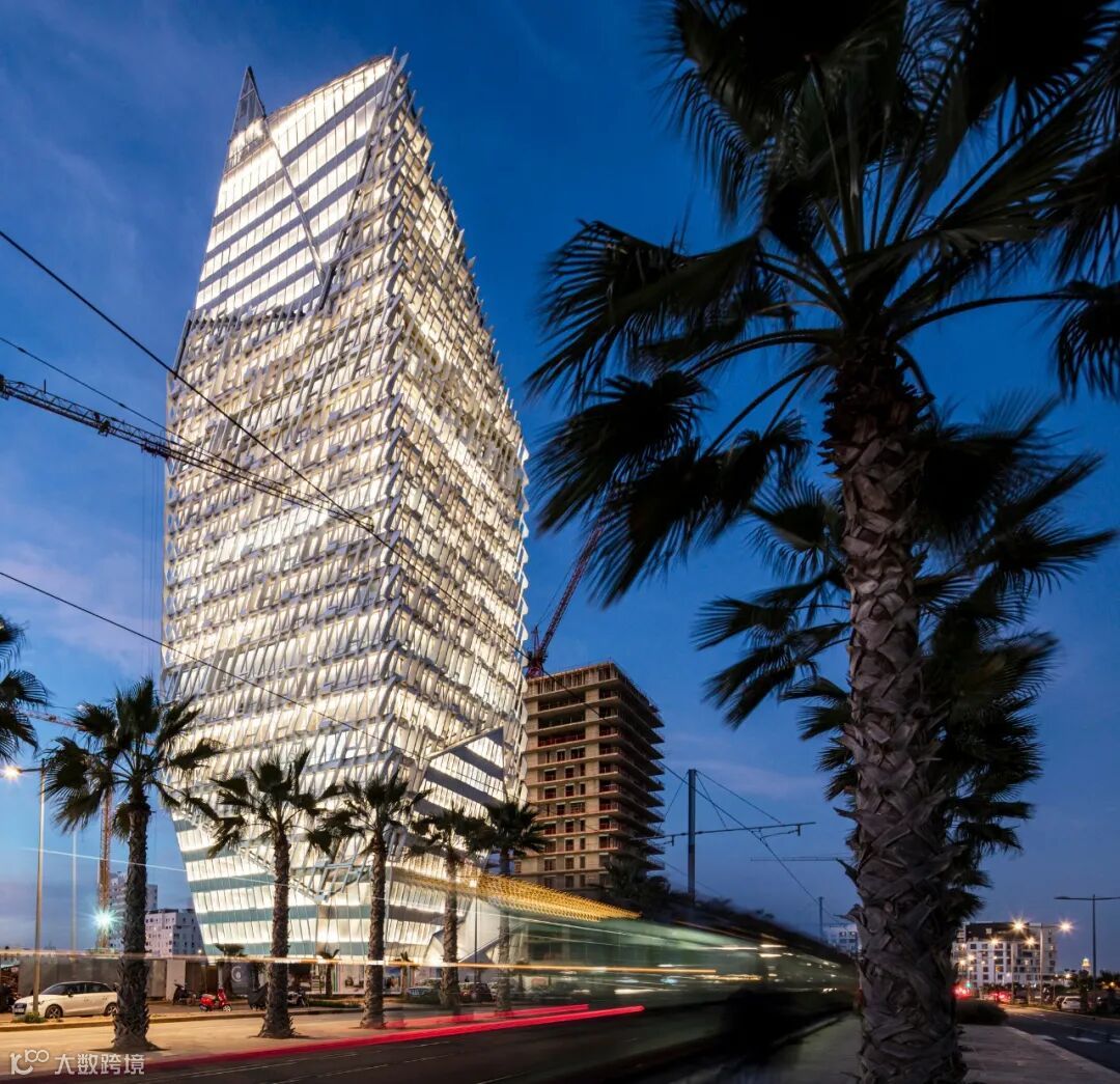 卡萨布兰卡金融城大厦由全球建筑公司Morphosis设计,是新成立的卡萨布兰卡金融城(CFC)--目前正在历史悠久的市中心西南部安法区开发的转型新商业区,实现的第一个项目。