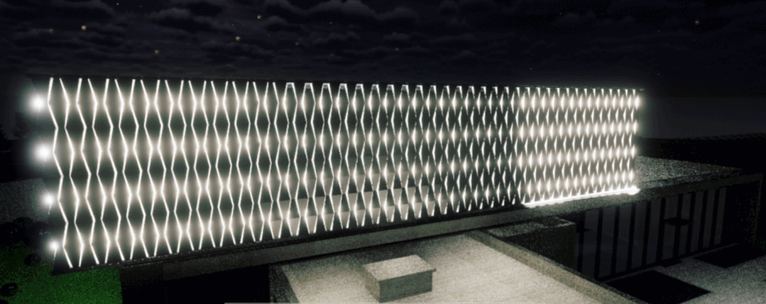项目售楼部位于一个待开发用地的街角位置,周边的城市界面有很多不确定性,对于一个临时建筑来说,我们希望用有秩序的图案化的界面迎接城市,编织幕墙是一种秩序的建筑手法。