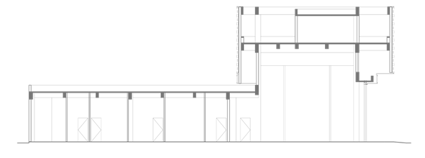 建筑的实际功能体量为一层建筑,但为了展示与城市界面的形象体现,我们在形体上做了二层的错动盒子,一方面展示效果更好,另一方面让形体与一层形成错动效果。二层用金属的编织幕墙效果与一层玻璃体形成体量虚实对比。