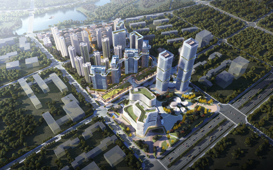 该地块临天府大道一侧将修建一栋中日合办三甲医院与两栋超高层办公,作为医院的学术交流中心(含305座报告厅),示范区融合了该地块的设计主题与意图:生命与未来,诠释人们对生命与未来的美好想象。