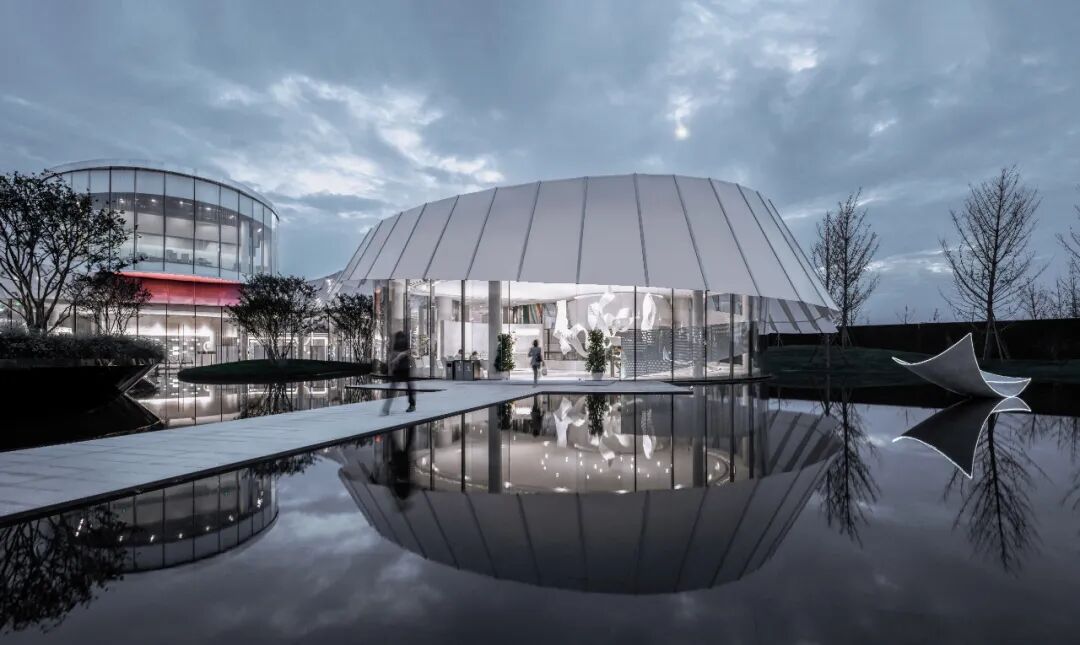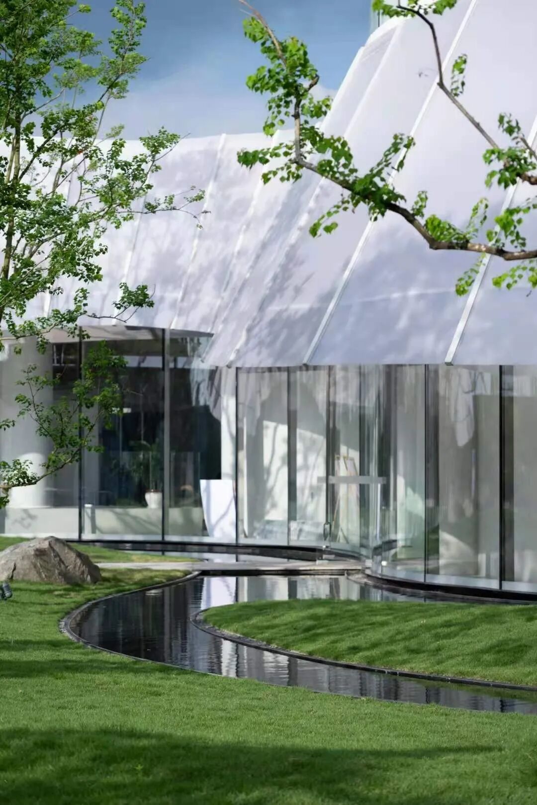 作为展示区,建筑的室内使用场景与室外是同样重要的,为了保证室内外建筑气质的趋同性与延续性,景观“零距离”环绕整个建筑,同时室内外的边界也应尽量减弱。