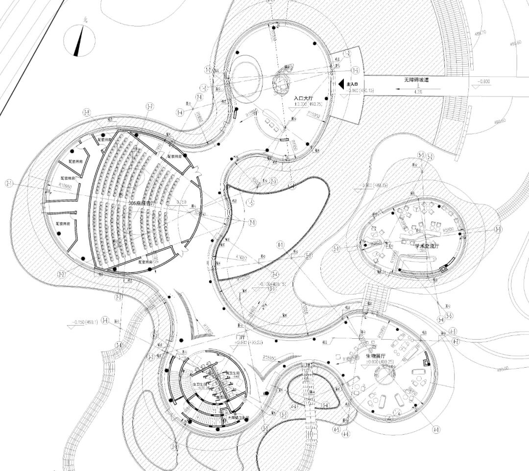 用曲线来诠释生命与未来的交织,给设计的实现与后期施工带来了一定的挑战。在本项目的设计过程中,我们使用参数化主导建筑设计过程,可以精确、高效率的调整、修改方案。