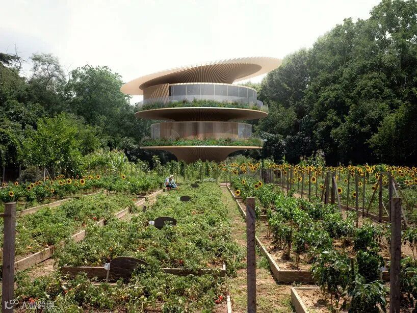 "向日葵之家 "的设计灵感来自于独特的黄色花朵和它面向太阳的方式。该项目受Bloomberg Green的委托,委托高田来描绘欧洲绿色的未来的梦想家园。