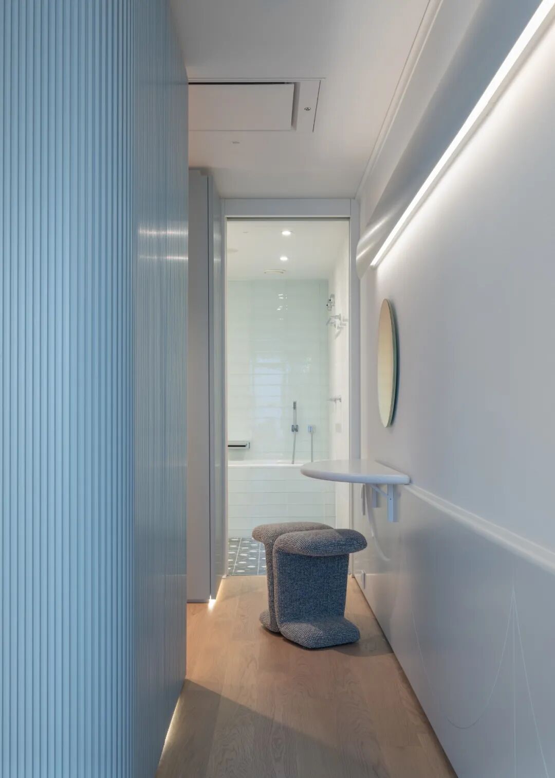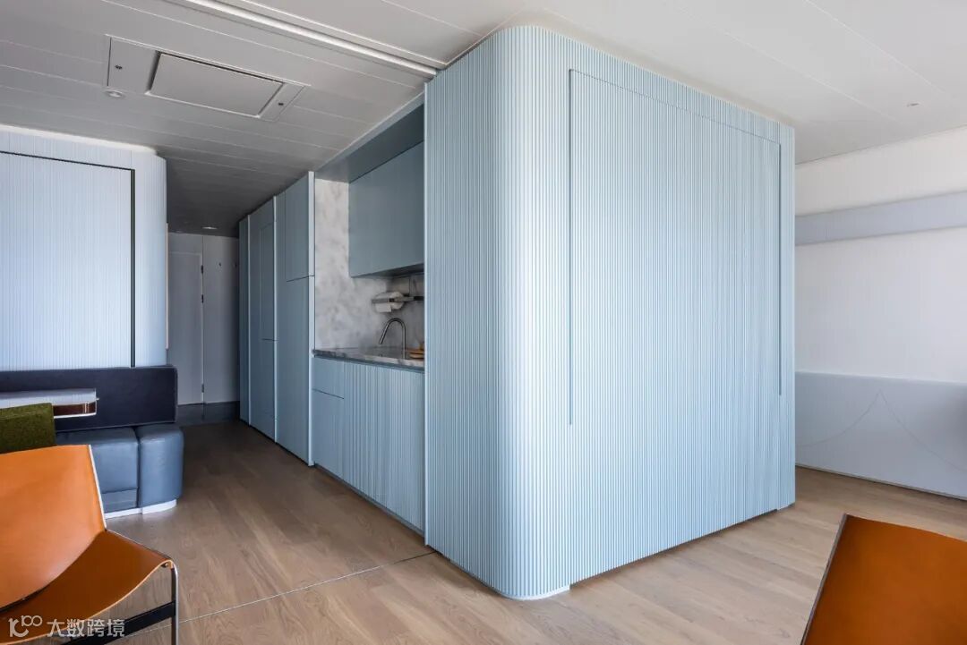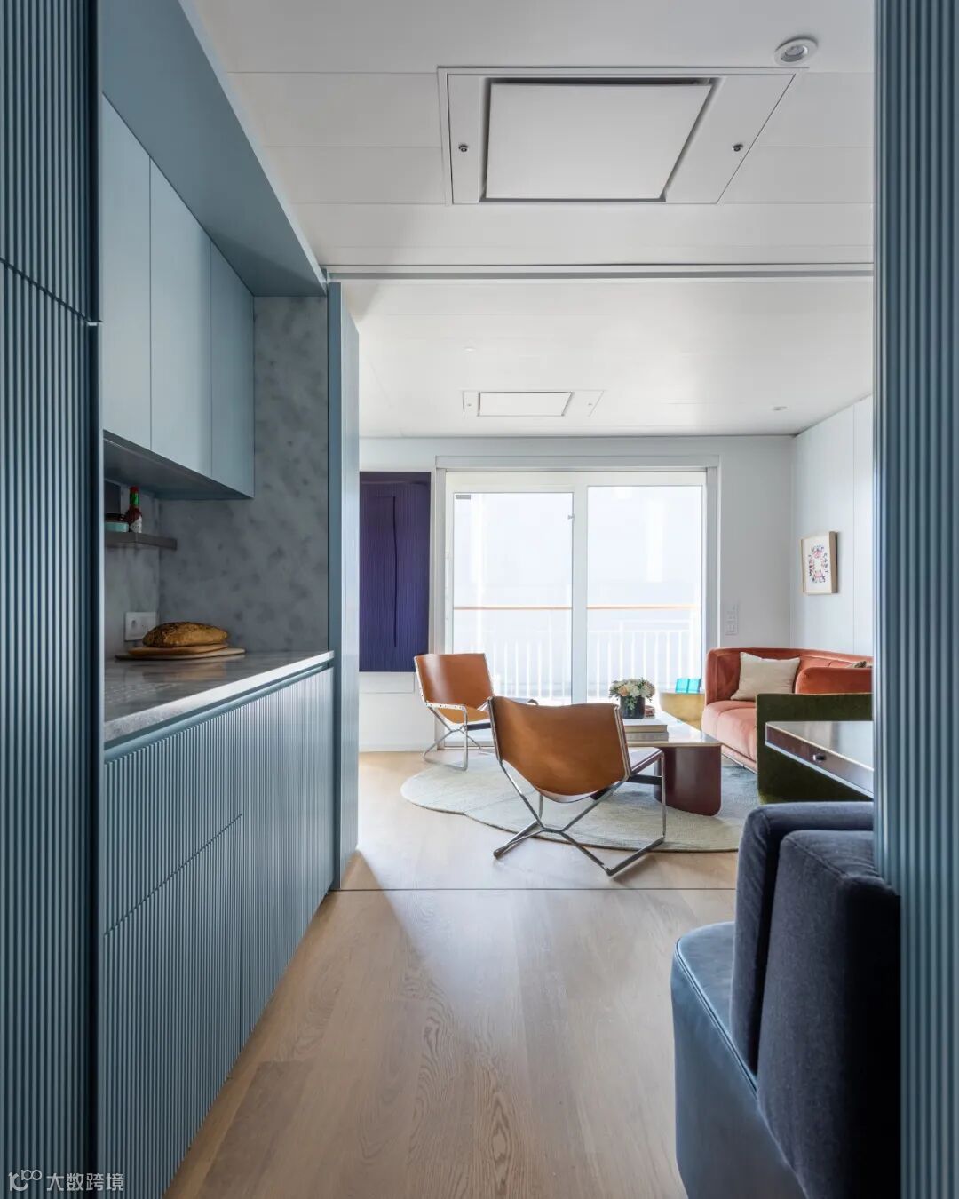 柯布西耶(Le Corbusier)对20世纪中期流线型蒸汽船设计的兴趣,以及MKCA在当代城市环境中创造紧凑、多功能空间的专长,让这套公寓兼具适应性、效率和惊人的优雅。