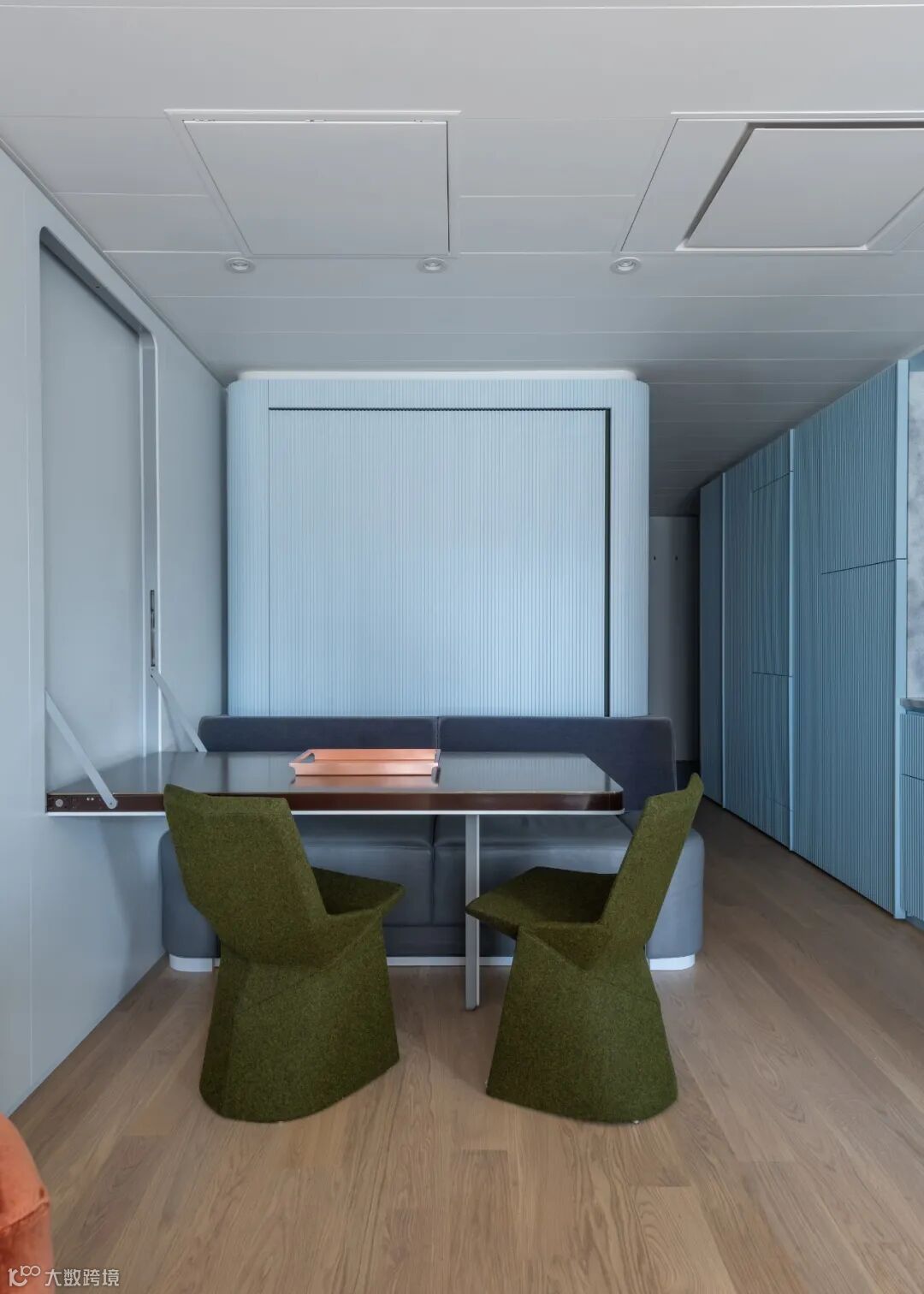 公寓的可转换布局借鉴了这些概念,并通过Chen描述的“功能维度的流线型和平滑化”来加强。运动,以及不同功能区的展开和隐藏,都是精心设计的。