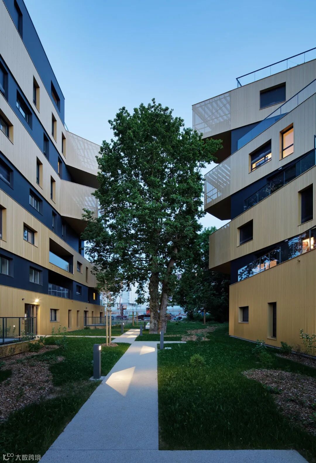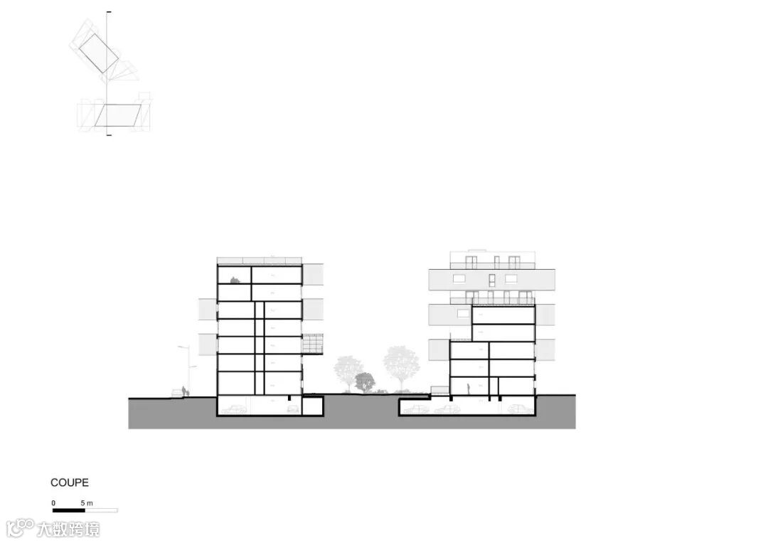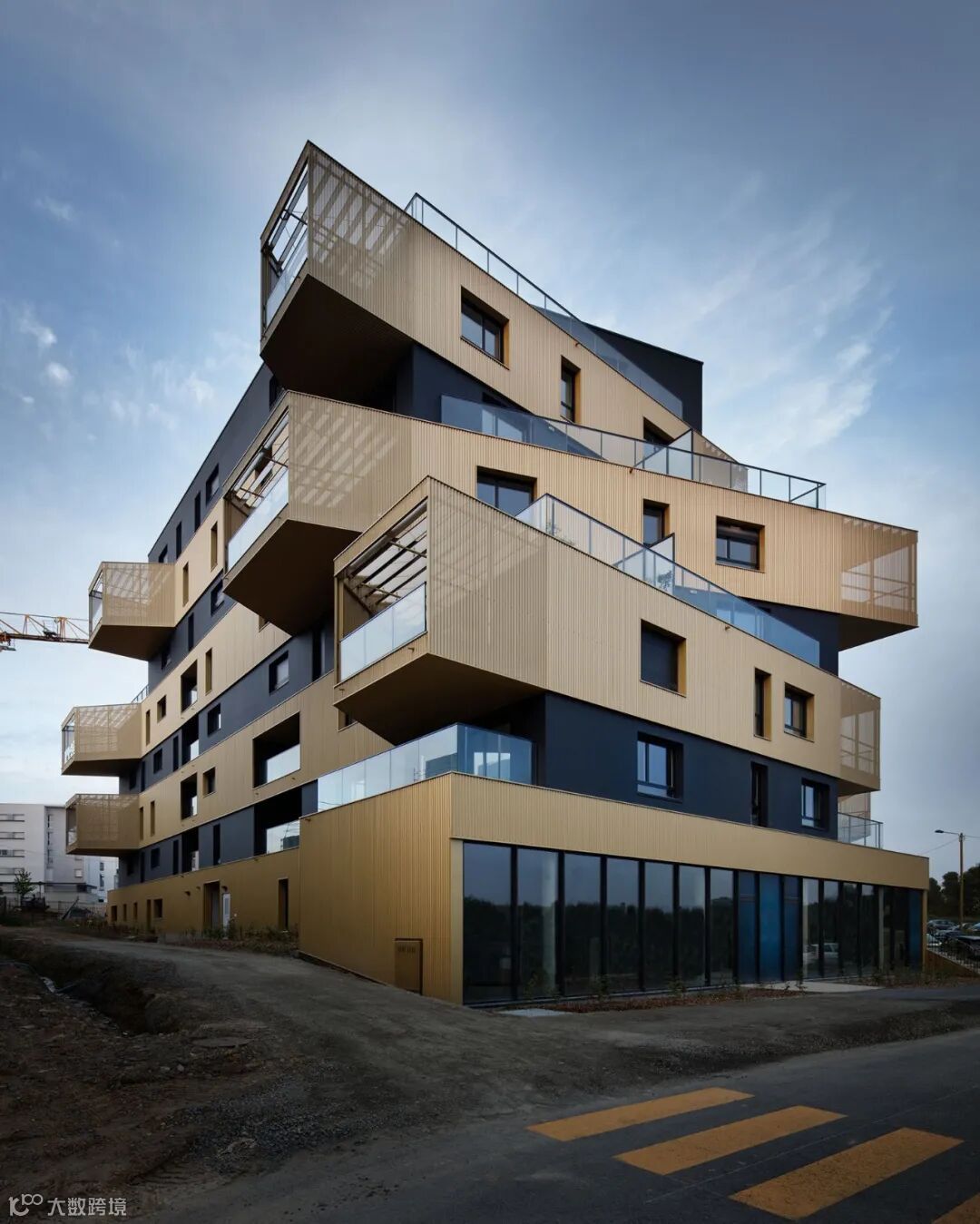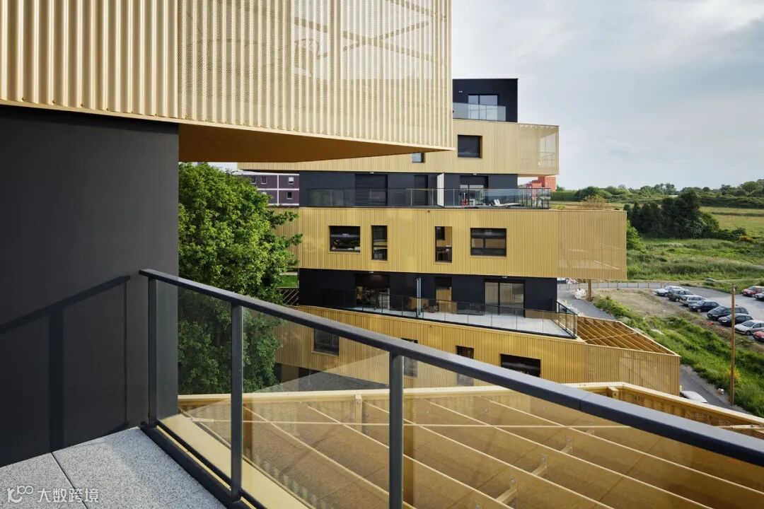 合理的楼层规划,提供了大量的多功能住宅,同时限制了电梯井的数量,确实有助于节省建设成本和维护费用。该项目在设计上非常垂直,由于每两层包括金色金属覆层的工作,在视觉上看起来是水平的,增加了体量外部的连续性。
