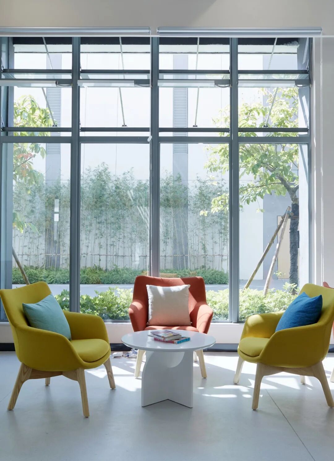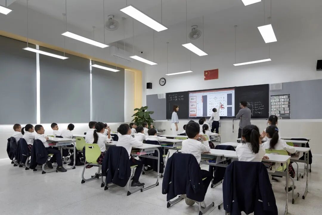 根据教师传统教学、个人自主学习、小组合作学习、实验探究学习等不同使用场景,设计师站在学生视角解构空间,利用不同颜色、可组合的桌椅赋予空间增加灵活感,分为日常教学活动的普通教室以及美术、音乐、舞蹈、科技活动等专业教室,学生在此合作研讨、社交沟通,以培养其思维及表达能力,从而适应双语学校开放、灵活的多元化教学模式。