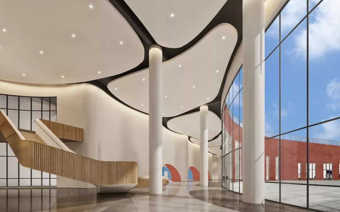 佛山梅沙双语学校是由梅沙教育重点打造的一所九年一贯制寄宿学校,总投资8亿元,占地6.5万㎡,建筑面积11万㎡。校园坐落于风光旖旎的仙溪水畔,毗邻集教育资源为一体的狮山大学城,于2020年9月正式开学纳新。其室内设计由深圳九度设计倾力担纲。