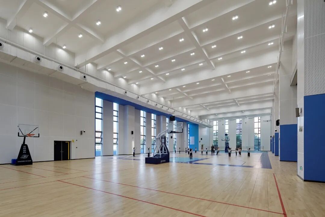 复合型空间的多样化重构、设置,令这里成为学生们开掘兴趣、培养爱好、展示才艺的一个小舞台,在不同的课间时段,表演、演讲、器乐排练等活动在此轮番展开,吸音的设计让整个空间更具独立性。