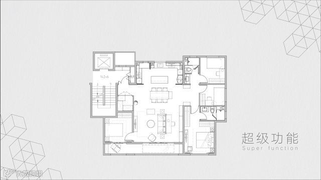 开敞的室内,又形成多条洄游动线,将各个功能空间串联在一起,多个出口可以帮业主找到最短路径,更让家变得有趣,提高家人的互动性。